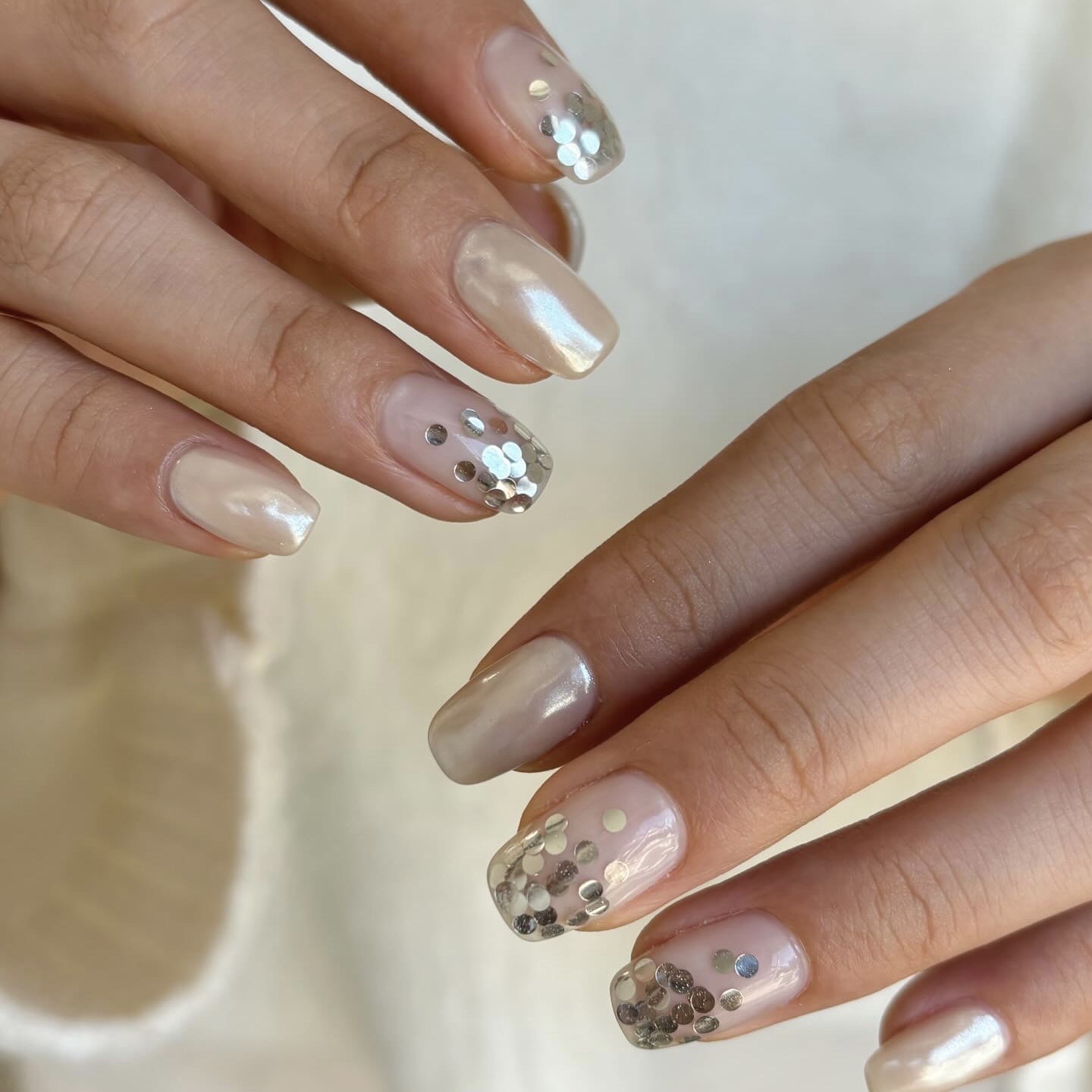 ・・・𝐌𝐢𝐫𝐫𝐨𝐫𝐛𝐚𝐥𝐥✨🪩✨️ちゅるんベージュに合わせたエッジのきいたミラーボールネイル🪩🖤⛓️韓国みもあって、シンプルに映えてキラキラでめちゃ可愛い🥹🫶💋いつも楽しみに来てくださり、こんな(中身ポンコツな)私に(w)寛大にご対応くださり...