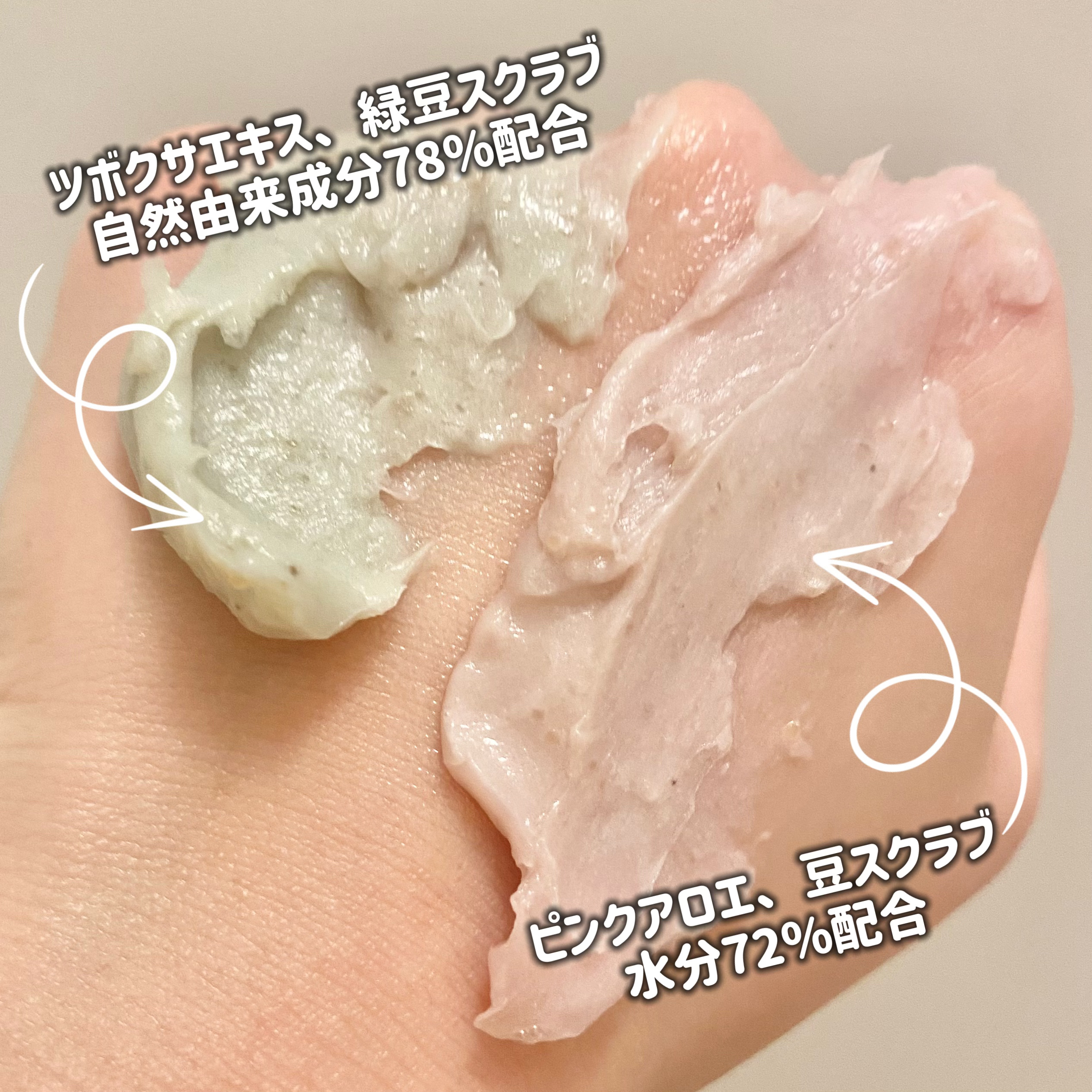 APRILSKINピンクアロエメレンゲクレンザー洗顔、パックにも使える新感覚2wayクレンザー🫧ピンクアロエや豆スクラブ、グリーンの部分はツボクサエキスや緑豆スクラブなどが配合されてるみたい🌿✨肌表面のザラつきを滑らかにしてくれて、汚れもスッ...
