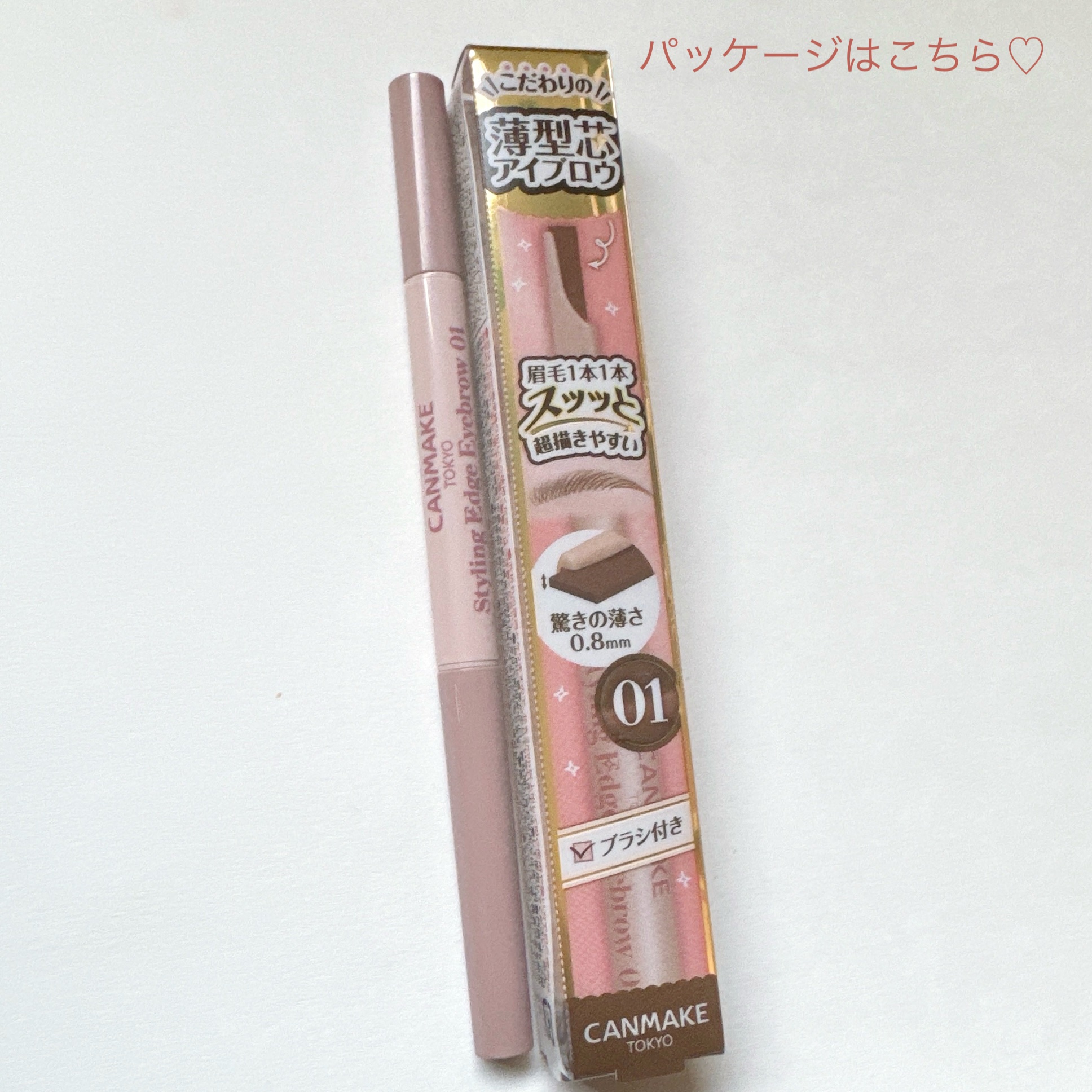 なんと0.8mmの薄型芯!?? キャンメイク スタイリングエッジアイブロウ 01 ナチュラルブラウン ¥770 めちゃくちゃ細くて細かいところも綺麗に描ける! 厚さは極薄だけど芯幅は4.0mmあるので安定して描けるよ! 水・汗・皮脂・こすれに強くて消えやすい眉尻もしっかりキープ♡ 反対側にはスクリューブラシも付いてるよ!