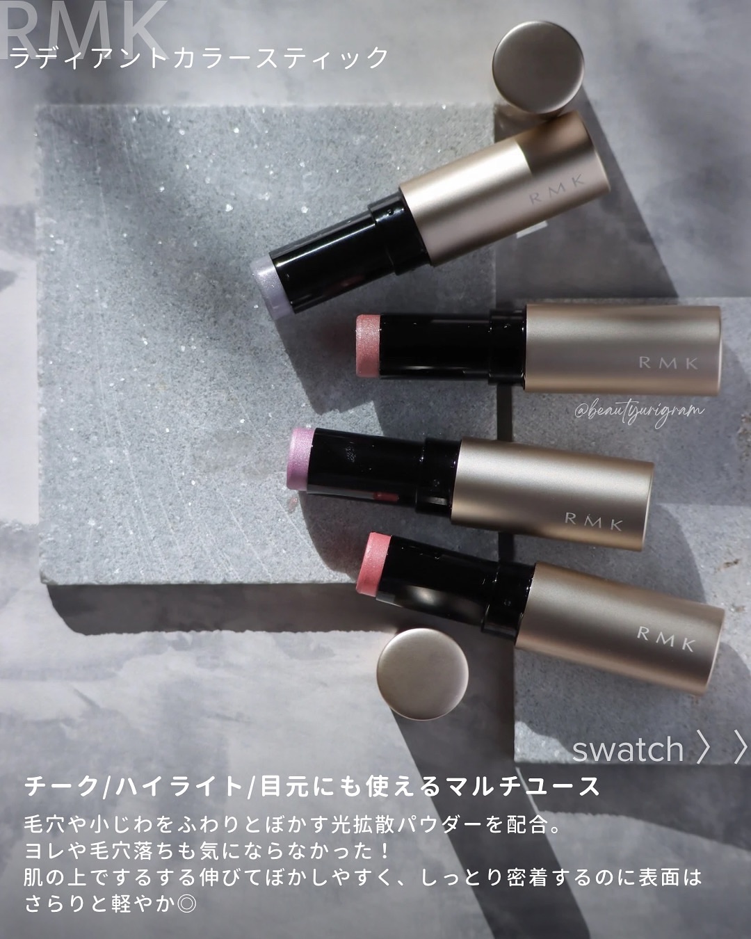ほのかな血色感をプラスしつつ、ツヤ肌を叶えるRMKの新作ラディアントカラースティック。 特に02番は血色感とツヤのプラスするタイプで1番使いやすいカラー! スティックタイプだから持ち運びにも便利だし、指で塗るとよりなめらかに広がるのがポイント💡