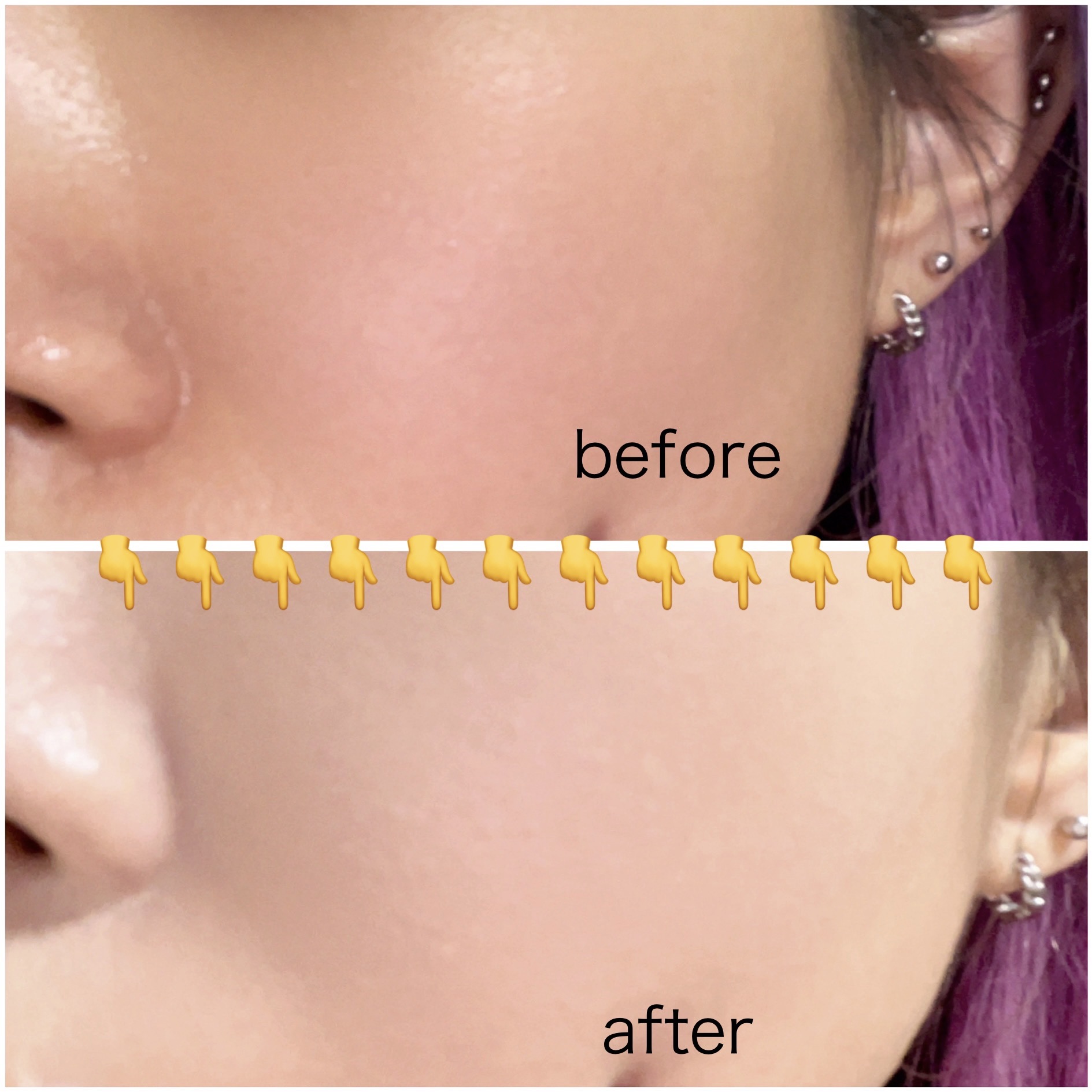 3日使用で効果を実感!! シミやくすみにに効果のあるグルタチオンが入ったカプセルはツブツブ感を感じることなく肌にすぐ浸透している感覚です。 毛穴の集中ケアに加え復活草+ビフィダ成分で保湿、キメ、弾力(ハリの復活)のケアと年齢的に気になる悩みを一括ケアできるところに魅力を感じ使用してみました。 刺激テスト済みというこもあり、敏感肌の私でも使用後問題なく安心して使用出来ました!!