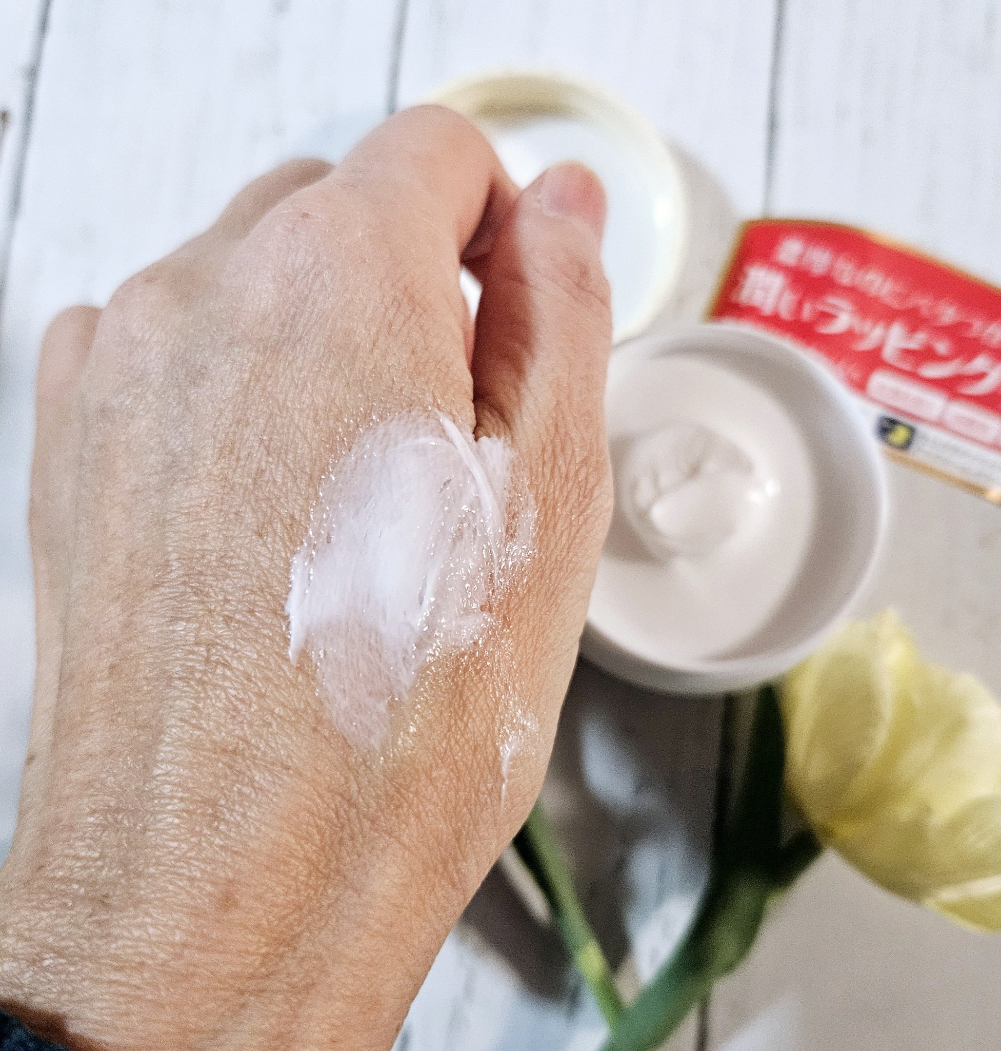 新感覚・濃厚なのにベタつかない、潤いをしっかり閉じ込めるフェイスクリームです‼️ 5種の天然オイルバター(ムルムルバター、シアバター、カカオバター、ライスブランバター、マカデミアナッツ)配合♦️ こっくりとした濃厚な白のクリームで、やわらかめのテクスチャー❕