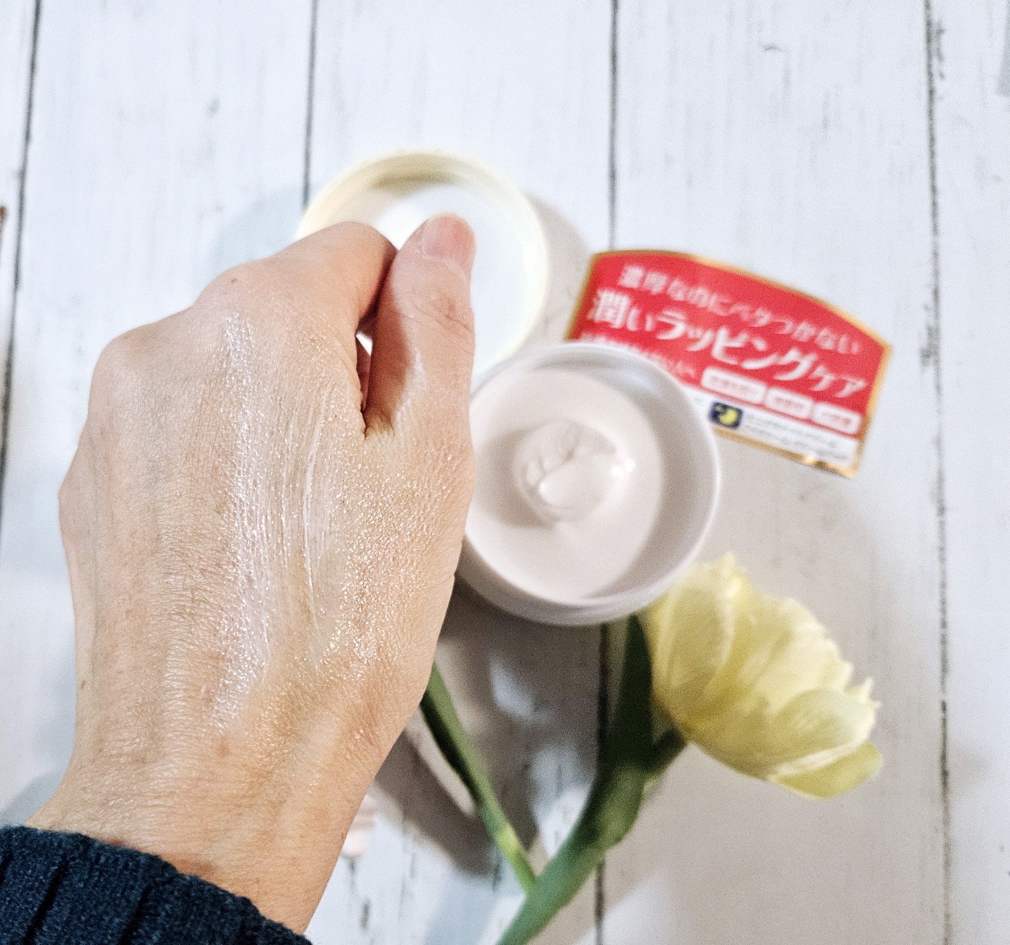 - <100g> 水、スクワラン、水添ナタネ油アルコール、ダイマージリノール酸(フィトステリル/イソステアリル/セチル/ステアリル/ベヘニル)、水添パーム油、グリセリン、DPG、ステアリン酸グリセリル、ペンチレングリコール、アストロカリウムムルムル種子脂、カカオ脂、コメヌカ油、シア脂、マカデミア種子油、セラミドNP、セラミドAP、セラミドEOP、加水分解コラーゲン、水溶性コラーゲン、ヒアルロン酸Na、プラセンタエキス、水溶性プロテオグリカン、ハチミツ、リンゴ果実培養細胞エキス、グリセリルグルコシド、BG、ジメチコン、ステアリン酸PEG-45、トリ(カプリル酸/カプリン酸)グリセリル、ミツロウ、トコフェロール、キサンタンガム、ヘキサ(ヒドロキシステアリン酸/ステアリン酸/ロジン酸)ジペンタエリスリチル、ヒドロキシプロピルシクロデキストリン、ブチルカルバミン酸ヨウ化プロピニル、ラウロイルラクチレートNa、フィトスフィンゴシン、コレステロール、カルボマー、レシチン