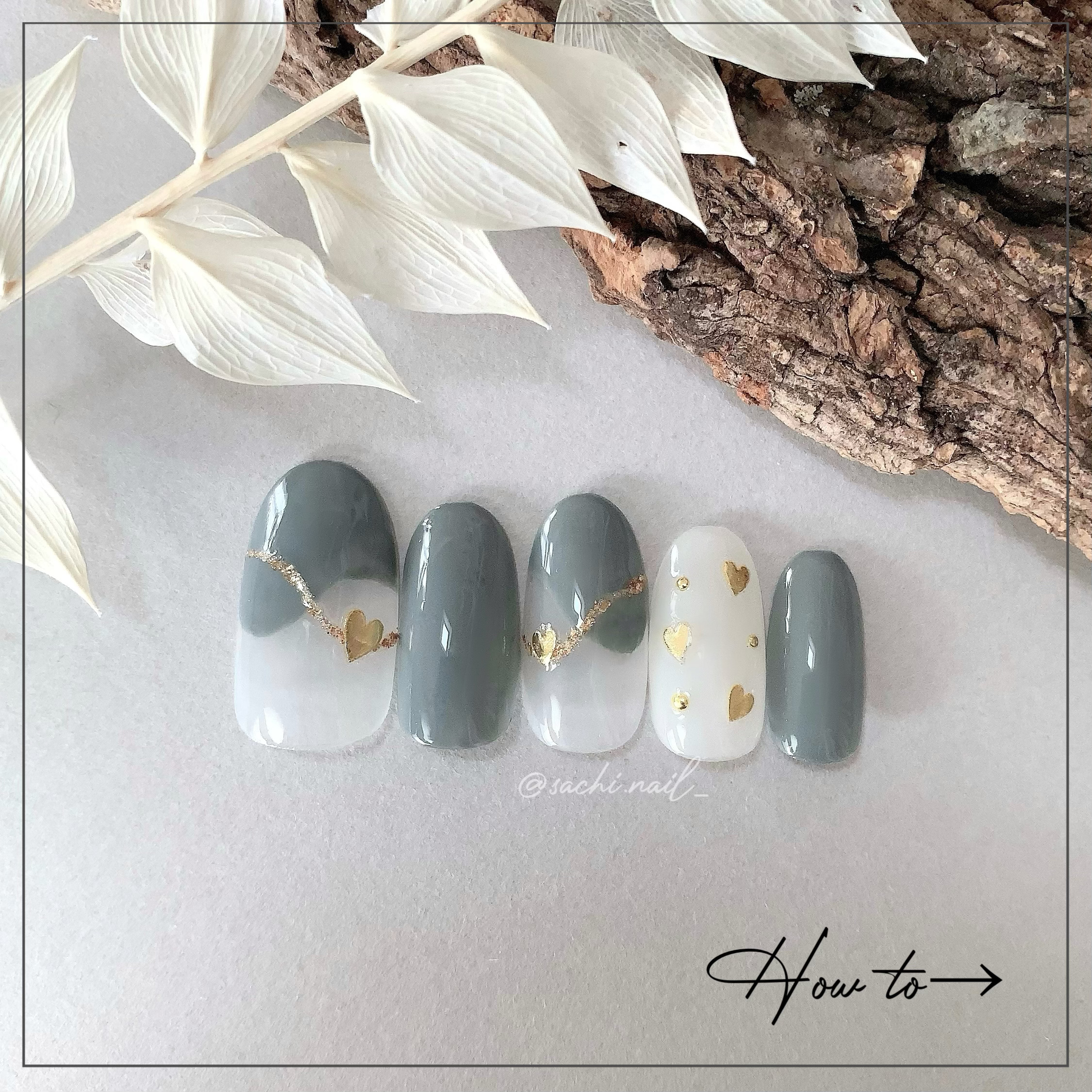 ワンカラーでも指ごとに色を変えるだけでオシャレに見えます💕 画像のようにゴールドラインとストーンを少し足すだけで華やかさがアップ🥰 何度かご紹介したことのあるスポンジで作るグラデーションです✨ スポンジを使うことで境目が綺麗に馴染んでくれます💕 アルミホイルの上でブラウンとトップコートを1:1くらいで混ぜたものを、トップコートのハケに取って3箇所に塗るだけ👌 事前に混ぜたものを塗ることで、爪の上でぼかすより簡単に出来ます💕 ベースカラーが乾く前に点置きしてぼかすことで綺麗にぼかせます✨ スピードが大事なので、使うポリッシュのキャップは全て開けておきましょう😊 天然石のラインはガタガタの方がより天然石っぽく見えるので、ラインを描くのが苦手な方でも大丈夫🙆♀️ 難しそうに見えて、やってみると意外と簡単に出来ます♡