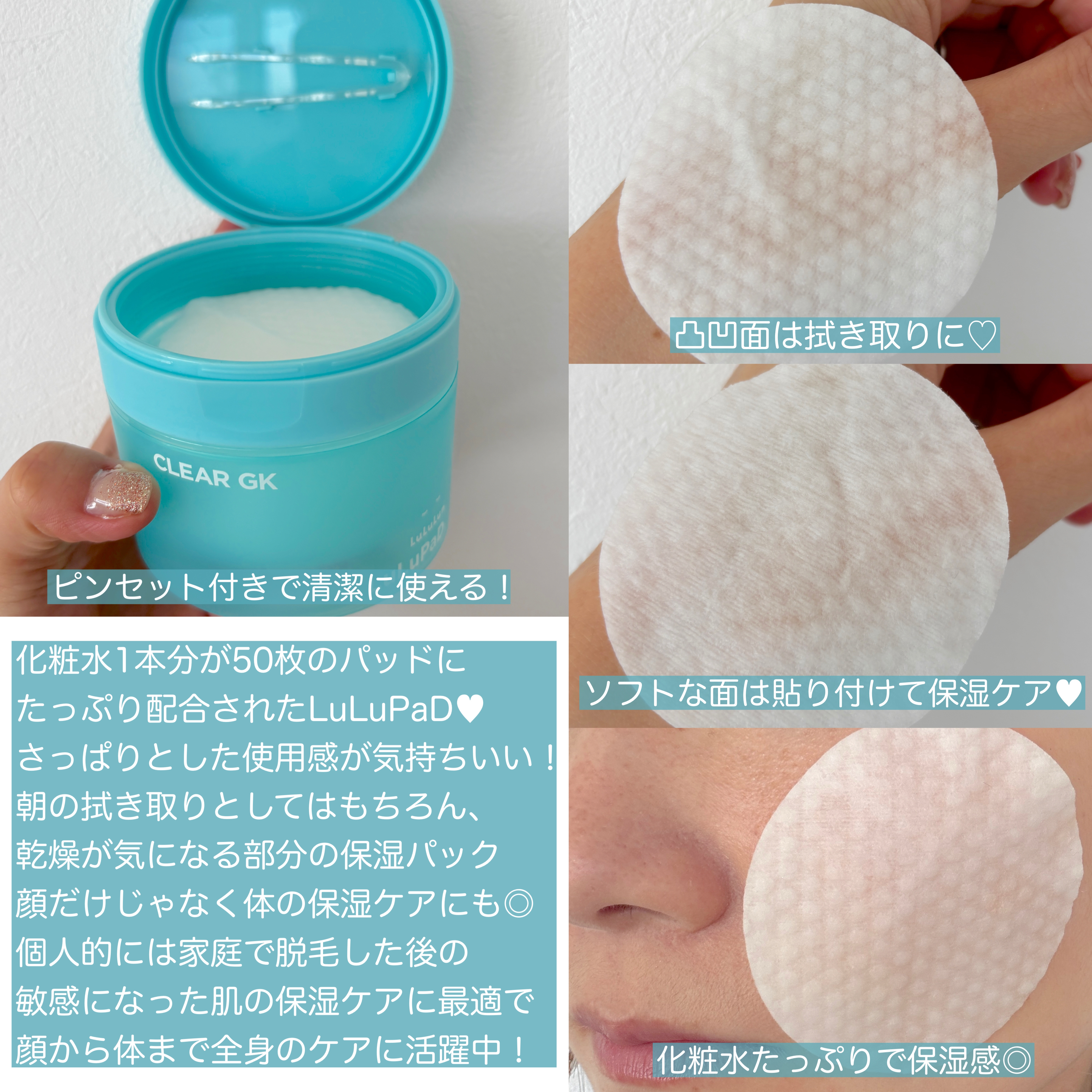 くすみが気になるお肌をケア! 2種類あってCLEARはさっぱりタイプで、MOISTはしっとりタイプ💡 50枚のパッドに化粧水1本分のエッセンスを配合✔️ デイリー使いの全身用スキンケアアイテム★ シトラスの香りがさわやかでいい香り🍃 全国のマツモトキヨシ、ココカラファイン限定⚠️
