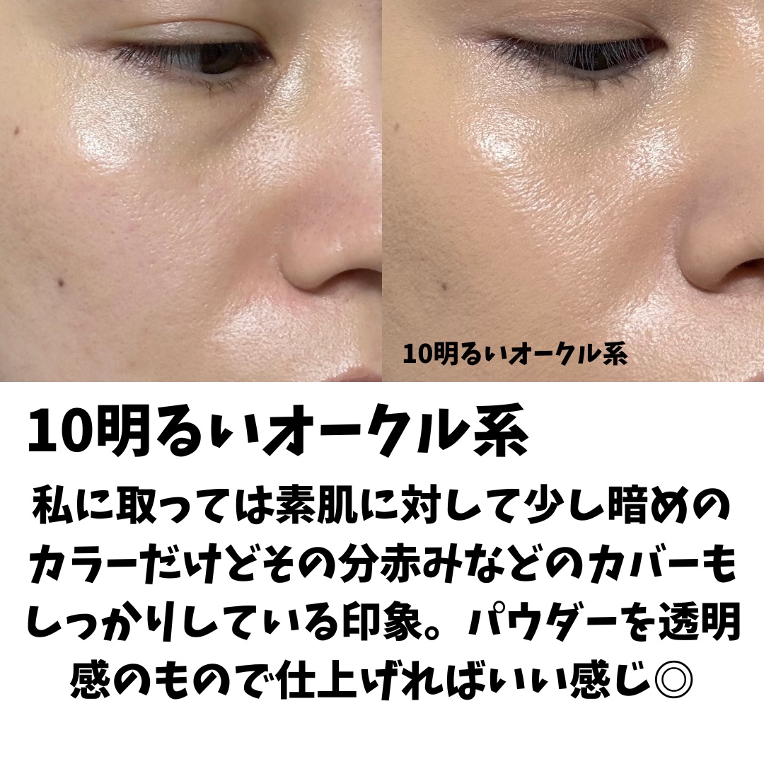 - <00明るいベージュ系> 水、シクロペンタシロキサン、イソノナン酸イソトリデシル、BG、PEGー9ポリジメチルシロキシエチルジメチコン、グリセリン、ペンチレングリコール、ジメチコン、ジフェニルシロキシフェニルトリメチコン、硫酸Mg、水酸化Al、ジメチルシリル化シリカ、(ビニルジメチコン/メチコンシルセスキオキサン)クロスポリマー、セスキイソステアリン酸ソルビタン、フェノキシエタノール、リンゴ酸ジイソステアリル、ステアロイルグルタミン酸2Na、ステアリン酸、(アクリレーツ/ジメチコン)コポリマー、(ジメチコン/(PEGー10/15))クロスポリマー、トコフェロール、スクワラン、乳酸桿菌/セイヨウナシ果汁発酵液、マンダリンオレンジ果皮エキス、ユキノシタエキス、クダモノトケイソウ果実エキス、ヒアルロン酸Na、ヒメフウロエキス、ブドウ葉エキス、ワイルドタイムエキス、ビルベリー葉エキス、ムラサキシキブ果実エキス、セイヨウオオバコ種子エキス、酸化チタン、酸化鉄、マイカ <10明るいオークル系> 水、シクロペンタシロキサン、イソノナン酸イソトリデシル、BG、PEGー9ポリジメチルシロキシエチルジメチコン、グリセリン、ペンチレングリコール、ジメチコン、ジフェニルシロキシフェニルトリメチコン、硫酸Mg、水酸化Al、ジメチルシリル化シリカ、(ビニルジメチコン/メチコンシルセスキオキサン)クロスポリマー、セスキイソステアリン酸ソルビタン、フェノキシエタノール、リンゴ酸ジイソステアリル、ステアロイルグルタミン酸2Na、ステアリン酸、(アクリレーツ/ジメチコン)コポリマー、(ジメチコン/(PEGー10/15))クロスポリマー、トコフェロール、スクワラン、乳酸桿菌/セイヨウナシ果汁発酵液、マンダリンオレンジ果皮エキス、ユキノシタエキス、クダモノトケイソウ果実エキス、ヒアルロン酸Na、ヒメフウロエキス、ブドウ葉エキス、ワイルドタイムエキス、ビルベリー葉エキス、ムラサキシキブ果実エキス、セイヨウオオバコ種子エキス、酸化チタン、酸化鉄、マイカ <20自然なオークル系> 水、シクロペンタシロキサン、イソノナン酸イソトリデシル、BG、PEGー9ポリジメチルシロキシエチルジメチコン、グリセリン、ペンチレングリコール、ジメチコン、ジフェニルシロキシフェニルトリメチコン、硫酸Mg、水酸化Al、ジメチルシリル化シリカ、(ビニルジメチコン/メチコンシルセスキオキサン)クロスポリマー、セスキイソステアリン酸ソルビタン、フェノキシエタノール、リンゴ酸ジイソステアリル、ステアロイルグルタミン酸2Na、ステアリン酸、(アクリレーツ/ジメチコン)コポリマー、(ジメチコン/(PEGー10/15))クロスポリマー、トコフェロール、スクワラン、乳酸桿菌/セイヨウナシ果汁発酵液、マンダリンオレンジ果皮エキス、ユキノシタエキス、クダモノトケイソウ果実エキス、ヒアルロン酸Na、ヒメフウロエキス、ブドウ葉エキス、ワイルドタイムエキス、ビルベリー葉エキス、ムラサキシキブ果実エキス、セイヨウオオバコ種子エキス、酸化チタン、酸化鉄、マイカ