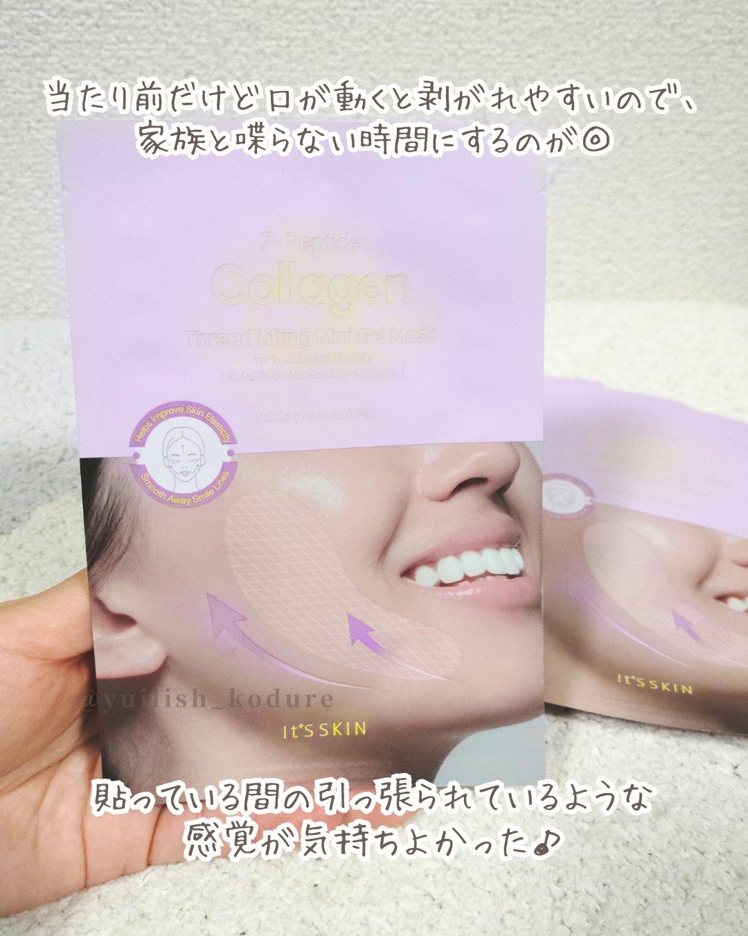 It's Skin 7 - ペプチドコラーゲン糸リフティングミニゲルマスク 5枚 たるんだ口元、目元…気になるAKEMINです🫣 高弾性特殊加工パワーリフティング糸と7種のペプチド、コラーゲンエッセンス配合 家でも手軽にエステのようなリフティングが可能に✨