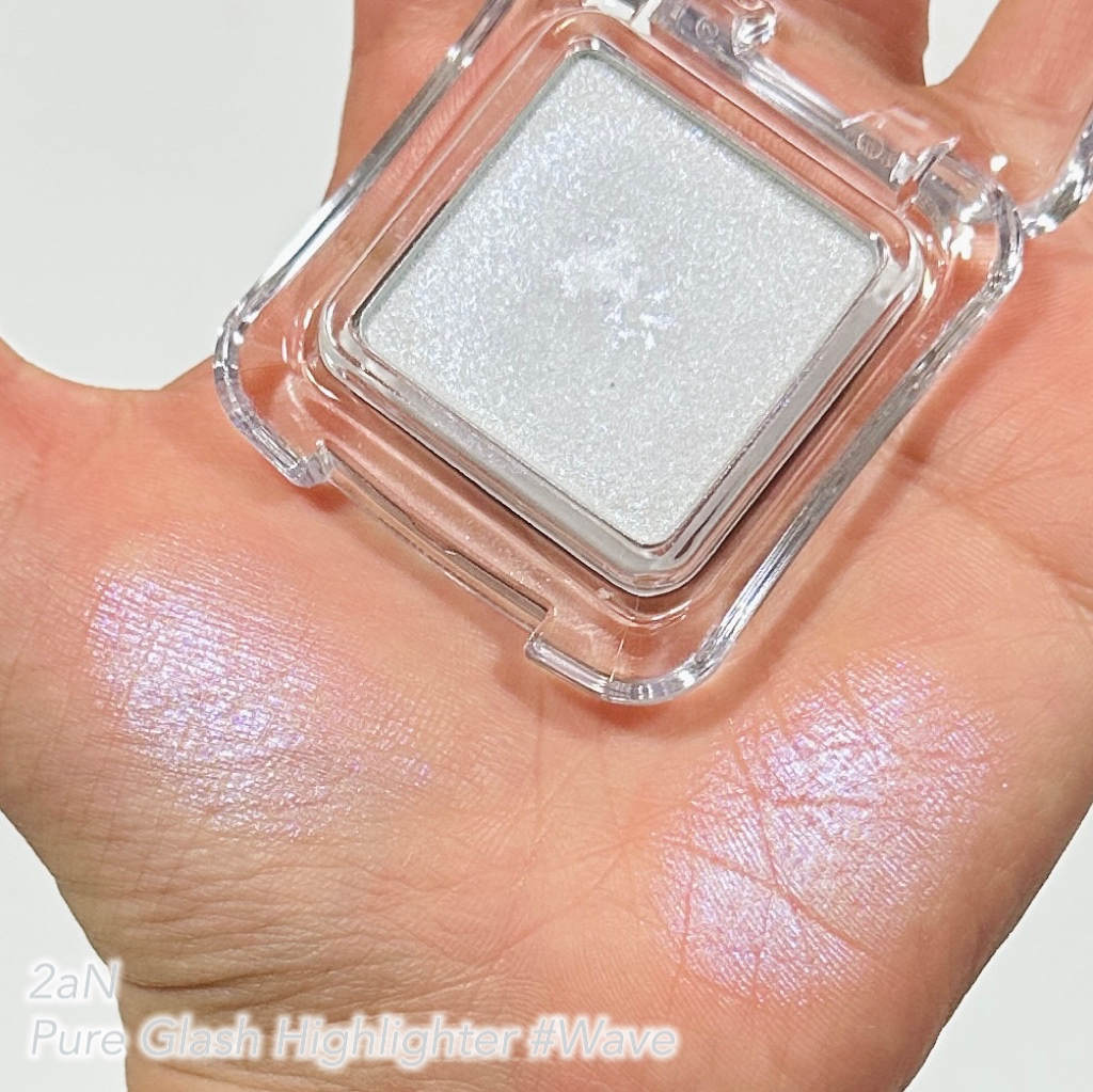 ホワイト×ブルーグリッターで透明感のあるブルービーム♡waveという名前のように、海に反射した光のようなきらめきを放ってくれてとってもかわいいです…✨ 柔らかく少ししっとりとした粉質で密着力も良く優秀なハイライト!私は目頭横と頬の中心、鼻先に乗せるのが好きです🪄 メイクのバランスを見て少しアイシーすぎるなと思った時は、ピンクベージュ系のハイライトを重ねるのがおすすめ!肌馴染みが良くなります◎