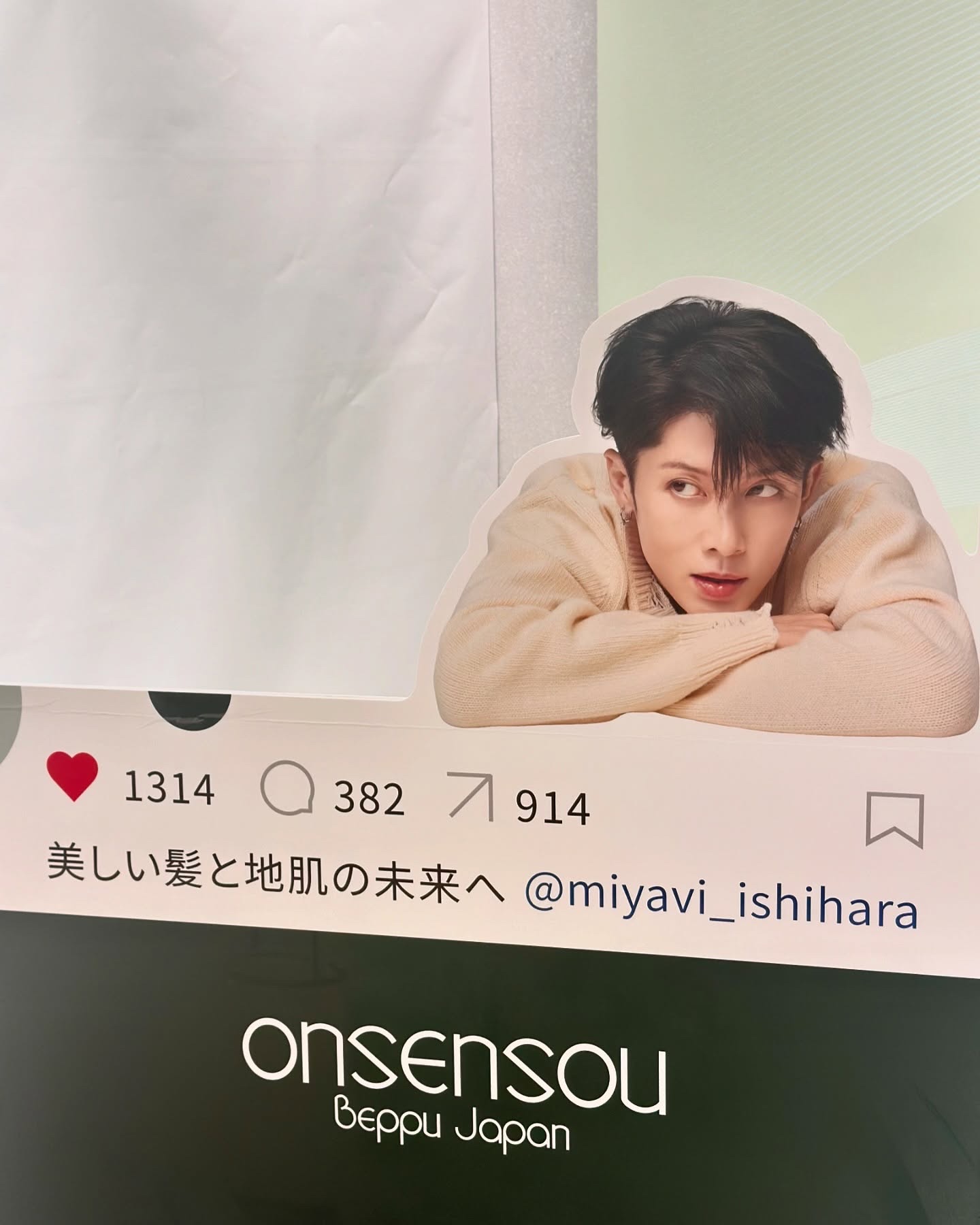 本当にコスメの宝庫すぎて色々あるし今回は、ONSENSOU目当てで行ってきた❕ 公式ストアで5,500円以上購入したらトレカと抽選券もついてきて、これでヘアケアも出来るし嬉しい🎀➳ 1枚目無加工なのにMIYAVIさん整いすぎて加工してるみたいなってる🥹