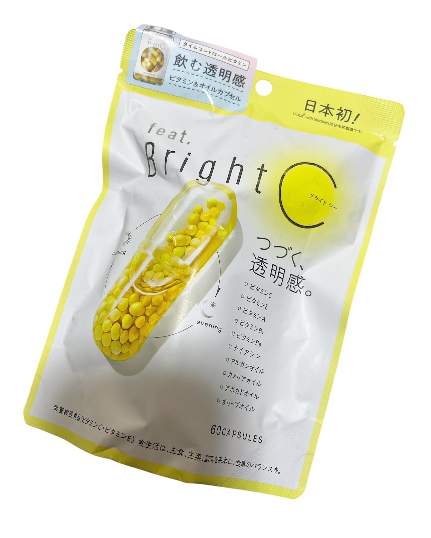 feat.BrightCをお試しさせて頂きました。こちらは時間をかけてじっくり溶ける多重構造のビタミンCビーズをぎゅっと詰め込んだカプセルです。透明なカプセルから中に黄色いつぶつぶが見えていて見た目もおしゃれで可愛いのが気に入っています。1日...