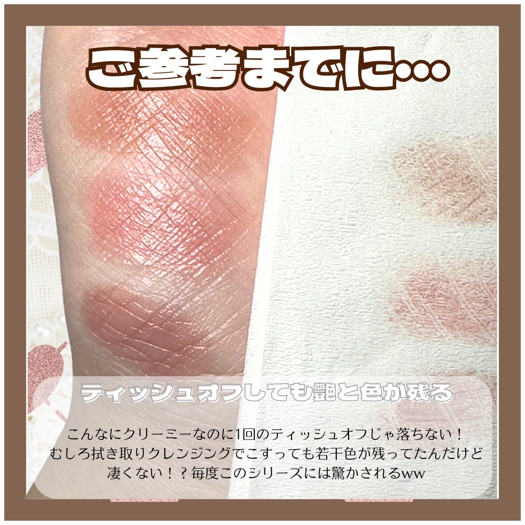 ロムアンドって謎に絶対的に信頼してるのってわたしだけですかwwww!?新作出るたびに絶対チェックしちゃう✨今回は新色のみ買ってみた⊂((・x・))⊃ 1回のティシュOFFだったらめちゃくちゃ色残りするし艶も残ってやっぱり凄いなと確信!!ティントだからまた荒れちゃうかな?って思ったんだけど唇に載せても私は荒れなかった😌 これだけ種類豊富だからパーソナルカラー気にする方でも合うものが見つかるのでは??