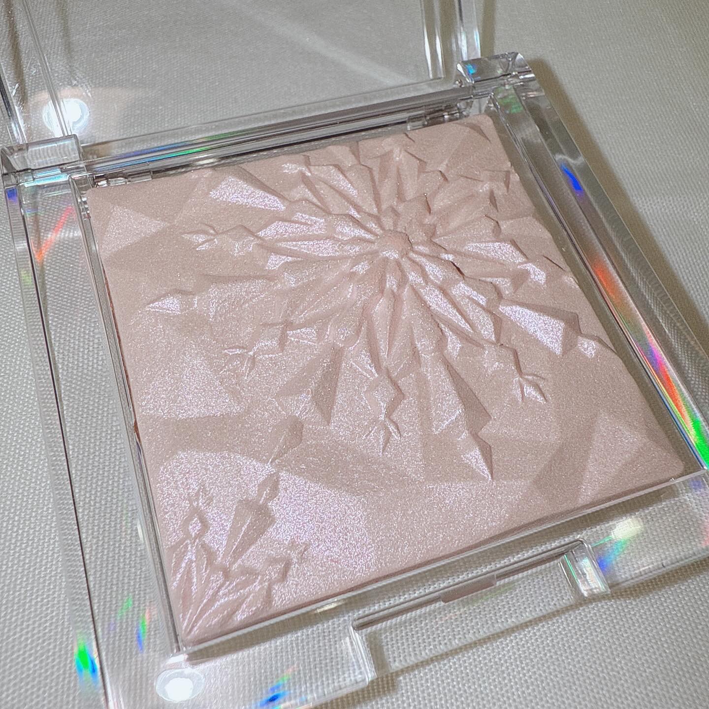 クリオの大大大人気ハイライトがリニューアルして可愛くなってるよ🥺 新色が加わって全部で6色🌈 雪の結晶デザインも可愛いし プラスチック部分がオーロラっぽく光るのも可愛い! 塗ってみるとナチュラルなピンク系の輝きで角度に寄ってはパープルっぽくもなって可愛い!