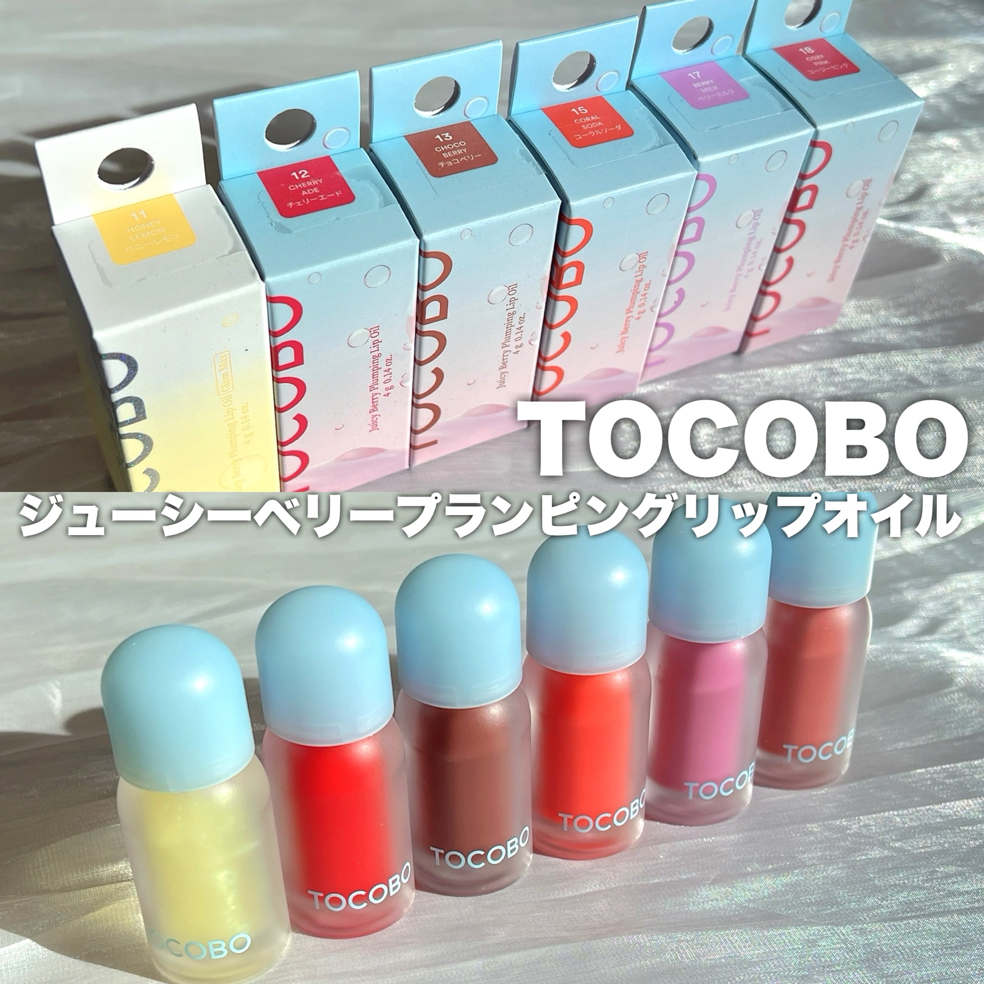 唇の角質改善、唇のしわをカバーしてくれる ボリューム感リップオイル👄 特に11番は、塗った直後に唇にパックをしたよに弾力が出てプランピング効果も2倍 マットなリップの上にトコボ リップオイルを塗ると話題のタンフル唇が完成💄