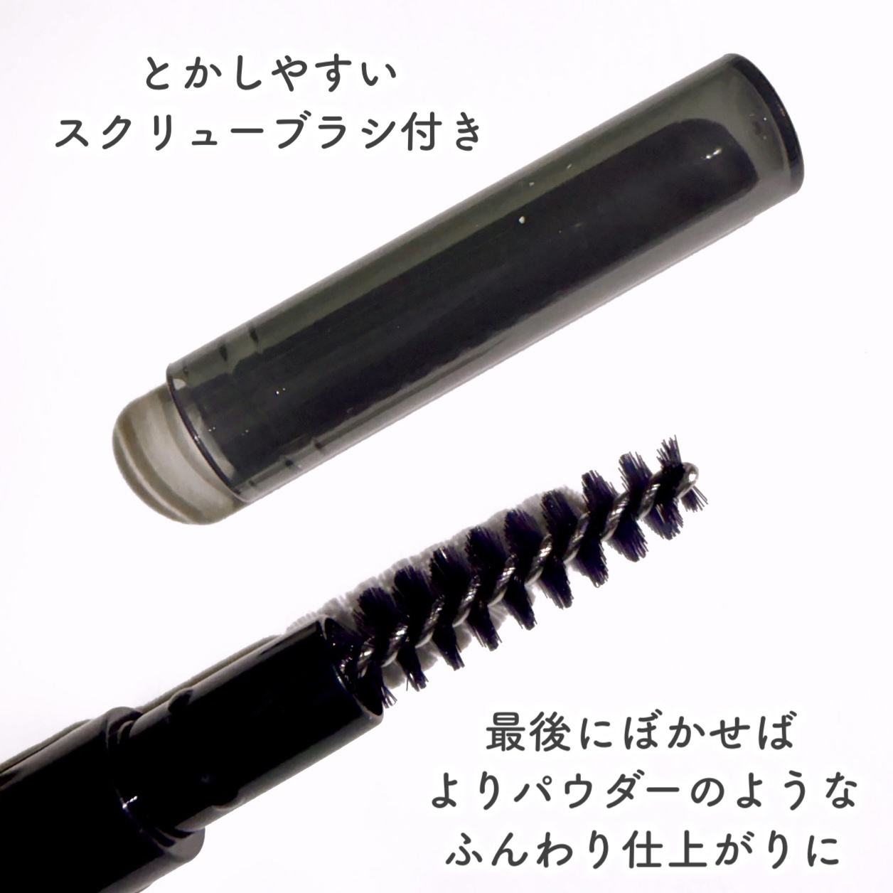 - ブラシでぼかして、パウダリー仕上がりに変化。 こすれても落ちにくい、ふんわり眉へ。 #パウダーチェンジ眉ペンシル