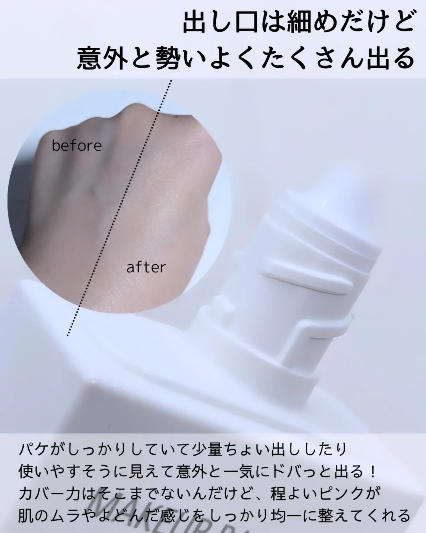伸びがいい みずみずしくさらさらとしたテクスチャだけど びちょびちょにならずさらっと馴染むので 重ねたりファンデ塗ったりしやすい 無臭 化粧品臭がないのでどんな日焼け止めもファンデとも合わせやすい 凹凸カバーがすごい 毛穴の凹凸も柔らかく埋めてくれて つるんとコンシーラーやファンデがのせやすい肌に整えてくれるので 自然と透明感アップしたようなメイクアップ効果を感じられる