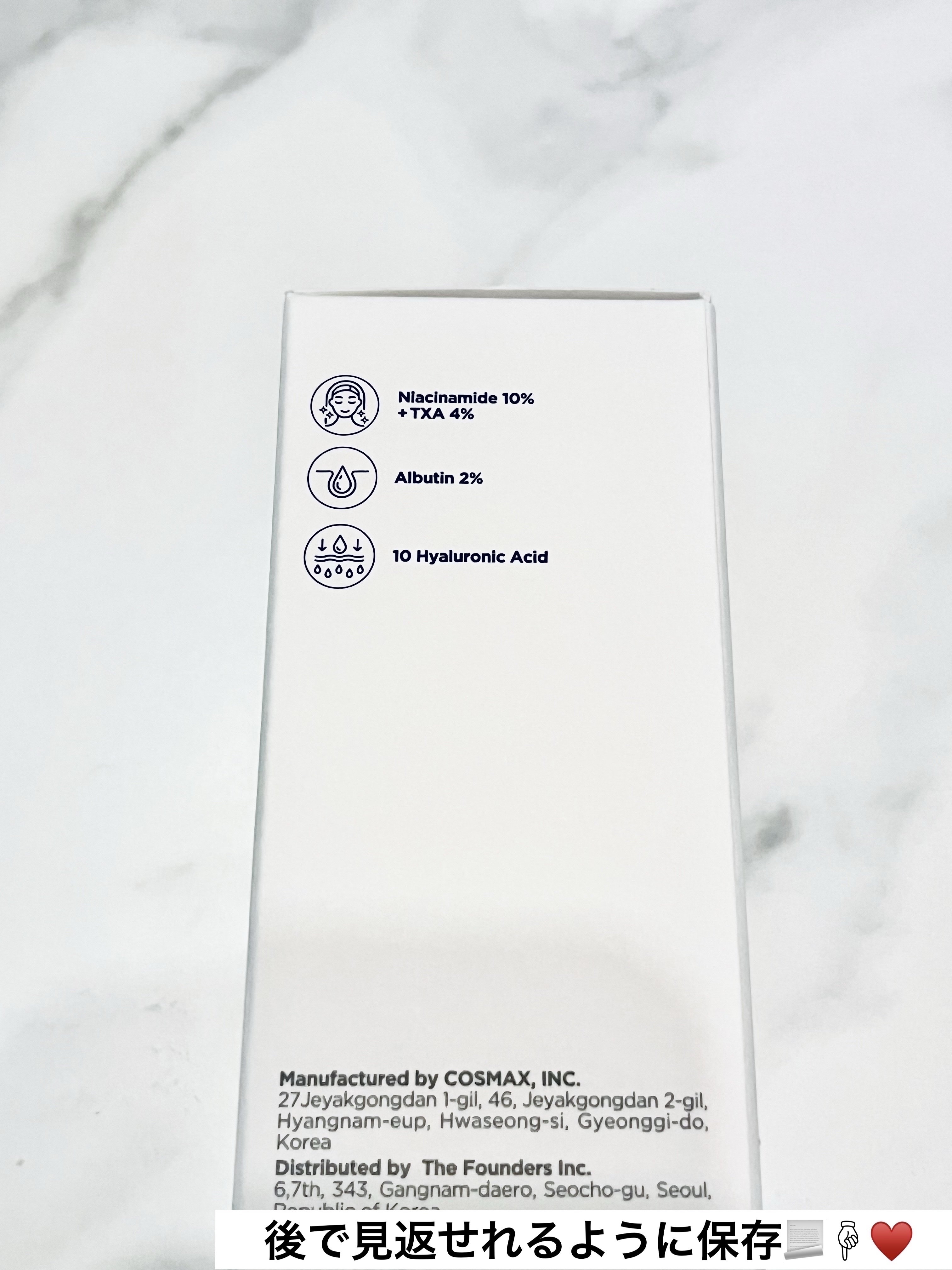 - <30ml> 水、グリセリン、ナイアシンアミド、トラネキサム酸、BG、コハク酸ジエトキシエチル、1,2-ヘキサンジオール、アルブチン、ヒアルロン酸Na、α-アルブチン、コクシニアインディカ果実エキス、タカサブロウエキス、マカデミア種子油、オリーブ果実油、ホホバ種子油、ブドウ種子油、カカオエキス、加水分解ヒアルロン酸、ヒノキ葉エキス、モモ花エキス、チャ種子油、酵母発酵エキス、ツボクサエキス、ヨモギ葉エキス、カンジダボンビコラ/(グルコース/ナタネ油脂肪酸メチル)発酵物、ヒアルロン酸、ペンチレングリコール、ベタインサリチル酸、パルミチン酸スクロース、水添リゾレシチン、ジェランガム、フィチン酸Na、セルロース、トリ(カプリル/カプリン酸)グリセリル、パンテノール、シアノコバラミン、ポリグルタミン酸、3-O-エチルアスコルビン酸、セラミドNP、デキストリン、アシアチコシド、マデカシン酸、アシアチン酸、ヒアルロン酸ジメチルシラノール、加水分解ヒアルロン酸Na、ヒアルロン酸K、ヒアルロン酸ヒドロキシプロピルトリモニウム、ヒアルロン酸クロスポリマーNa、ヒアルロン酸ジメチルシラノールNa、アセチルヒアルロン酸Na、キサンタンガム