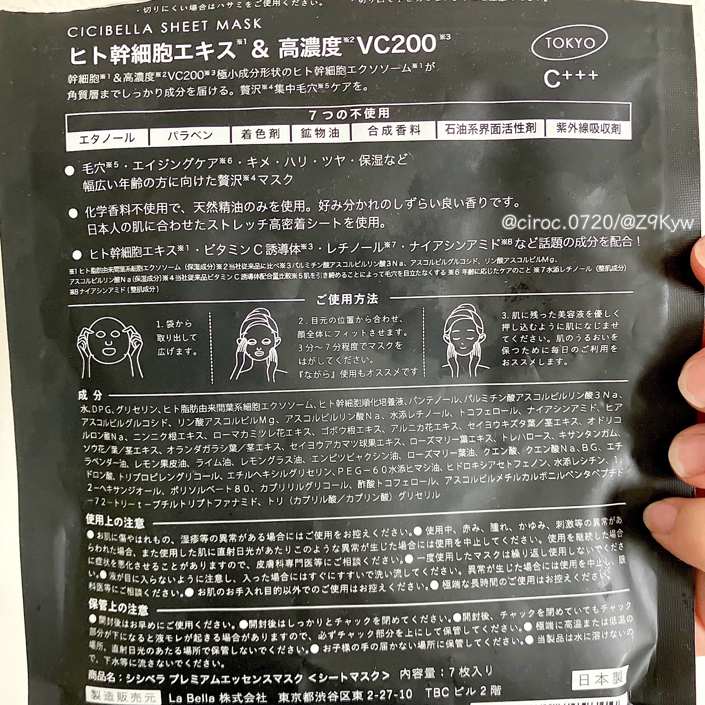 商品詳細情報CICIBELLA シートマスク ヒト幹細胞×VC200