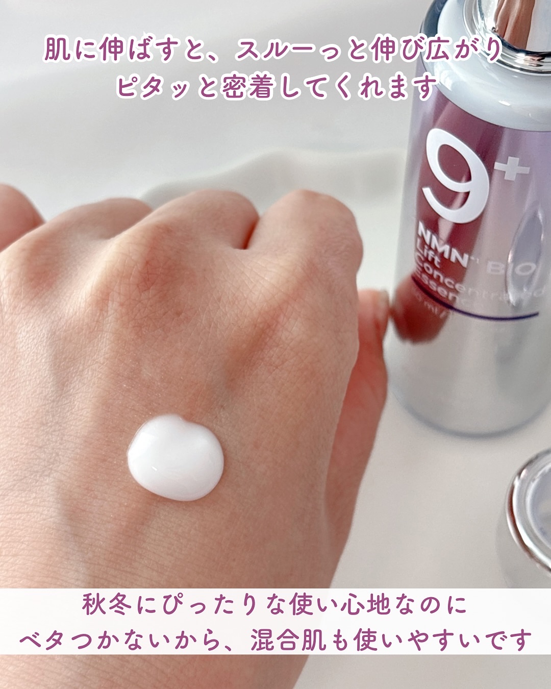 年齢を重ねると減ってしまうNMNをデイリースキンケアとして取り入れられる美容液✨ クリームのように濃厚で伸び〜るテクスチャーだけどベタつかず、弾力をチャージしてふっくら肌に🤍 1/1〜のQoo10新年セールで購入すると、9番シートマスクも1枚ついてきます🙌🏻