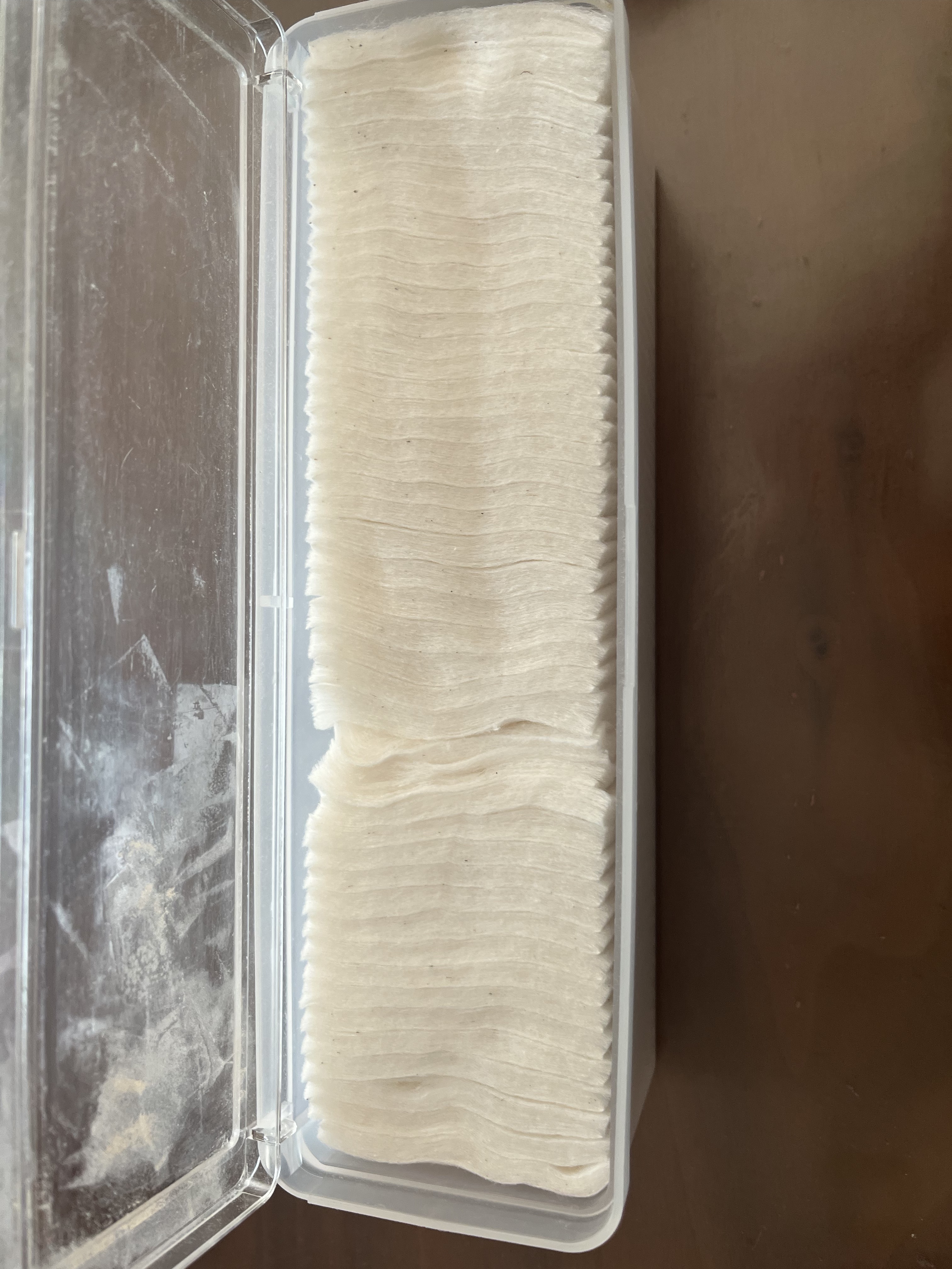 無印良品生成カットコットン180枚299円100円値上がりしてた(⸝⸝⸝ᵒ̴̶̷̥́⌑ᵒ̴̶̷̣̥̀⸝⸝⸝)でも柔らかいし、毛羽立たないし、コスパいい(*´ω`*)メイク落とし用に買ったけど、スキンケアでもどちらでも使えそう(*´ч`*)透明...