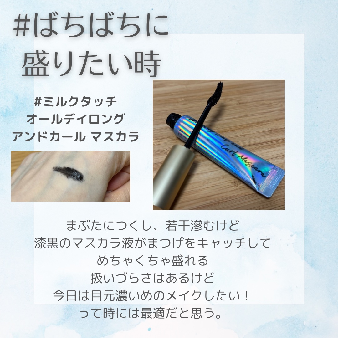 Milk Touch オールデイ ロング アンド カール マスカラ | 1,628円 |