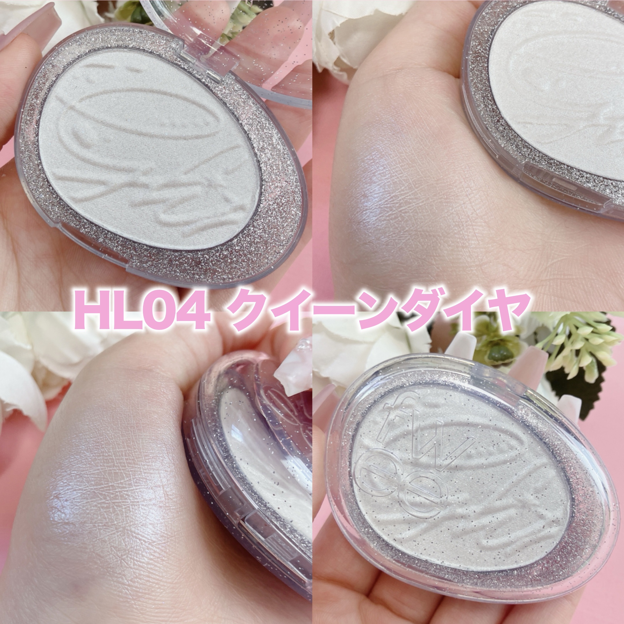 誕生石をテーマにした12色のハイライターはデイリーに使いやすいピンク・ベージュから、ブルー・レッド・グリーンの独特なカラーまで揃ってる! HL01 フィーバーガーネットはハイライトはもちろん、チークとして頬や鼻の頭に乗せてもめっちゃ可愛いの! ホワイトパールたっぷりで煌めきが美しい。少しピンク感も感じて、薄く塗ればデイリーに、しっかり塗れば華やかにも使える万能カラー!