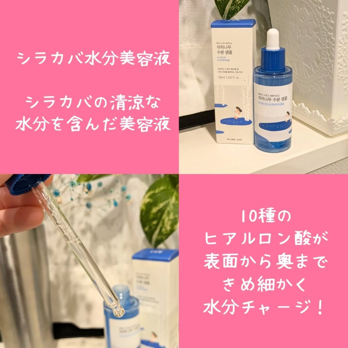 シラカバの清涼な水分を含んだ美容液。 1日中しっとりが続く✨ 10種のヒアルロン酸が表面から奥まできめ細かく水分チャージできちゃうよ! 鎮静を加えた水分UVケアできちゃうよ♡ SPF50 PA++++でしっかりガード😎 テクスチャーは柔らかくて、さっぱり使えるエッセンスタイプだから、つけてカピカピになる心配も感じなかったよ👍 さらさらテクスチャーなのにしっとりだから重くならなくて使いやすいよ👍