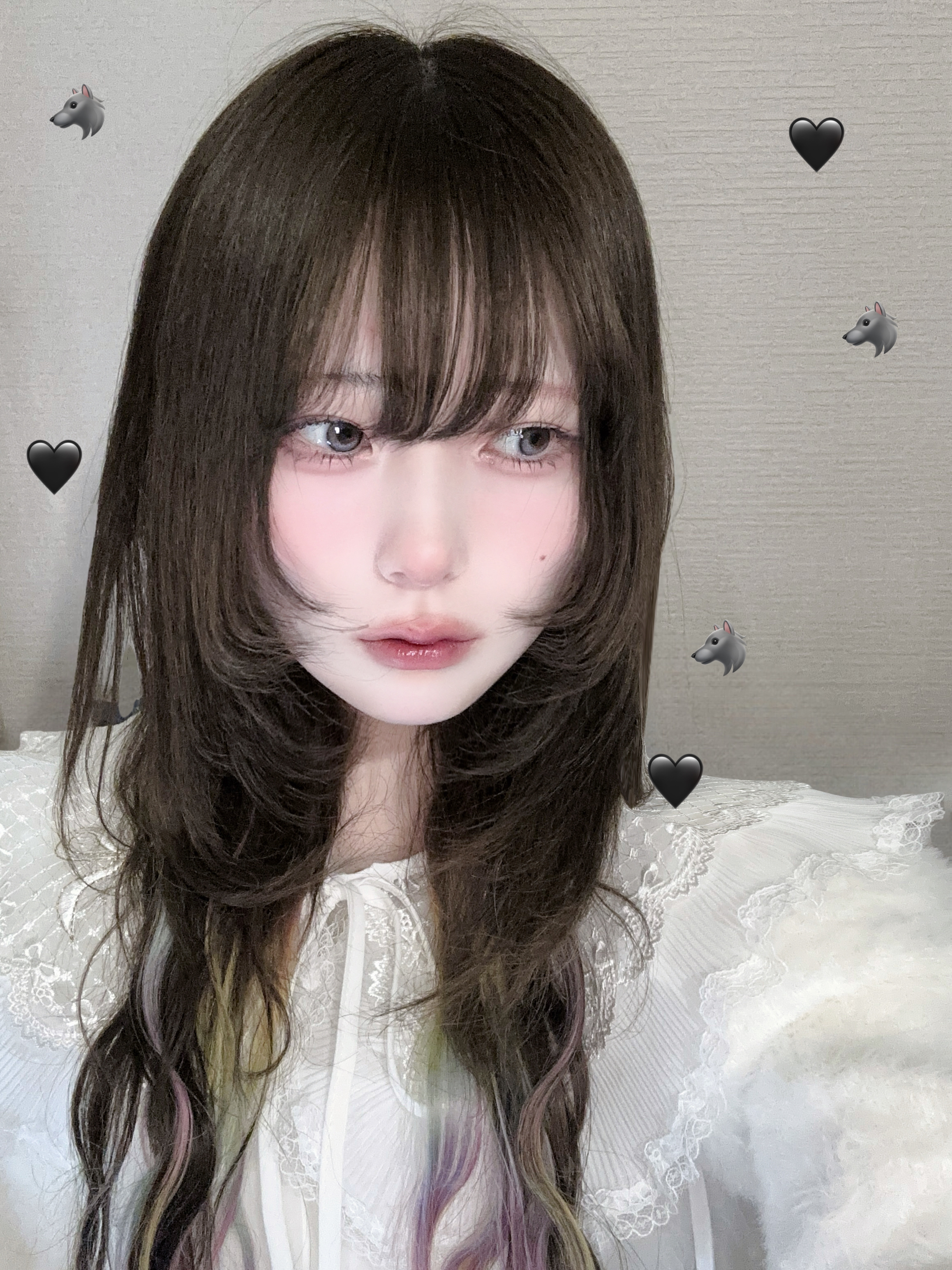 !!! 可愛すぎた👏ロングウルフってこんなにもかわいいの… 黒髪×虹色もかわええ