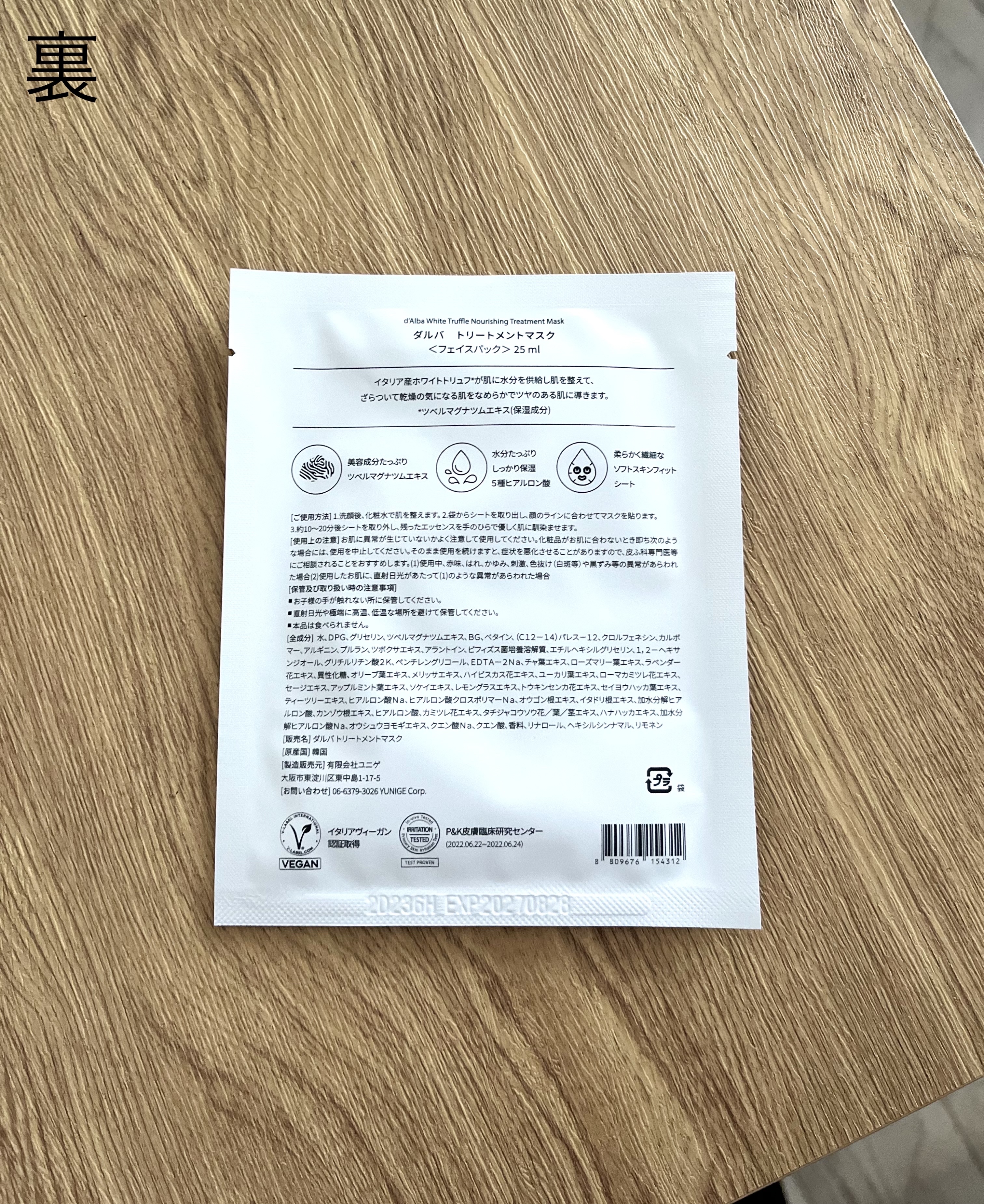 イタリア産ホワイトトリュフ配合の美容液がお肌に水分を供給し整え、ざらつきや乾燥の気になるお肌をなめらかなツヤ肌に導いてくれるというシートマスクです。 ヴィーガン認証取得のシートが肌に優しく密着。顔の凹凸にも隙間なくフィットします。 ダルバの高級感のある香りがします。