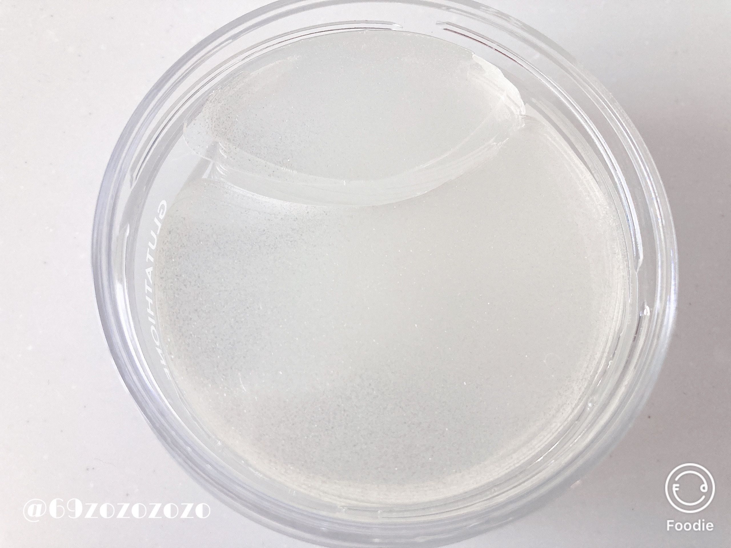 ぷるんぷるんのパッチ。ぴたっと肌に張り付くように密着してくれます。 本物のダイアモンドの粉が入っているそうで、パッチがキラキラ輝いています。 高純度99%のグルタチオンとナイアシンアミドで透明感のある美しい肌に導く