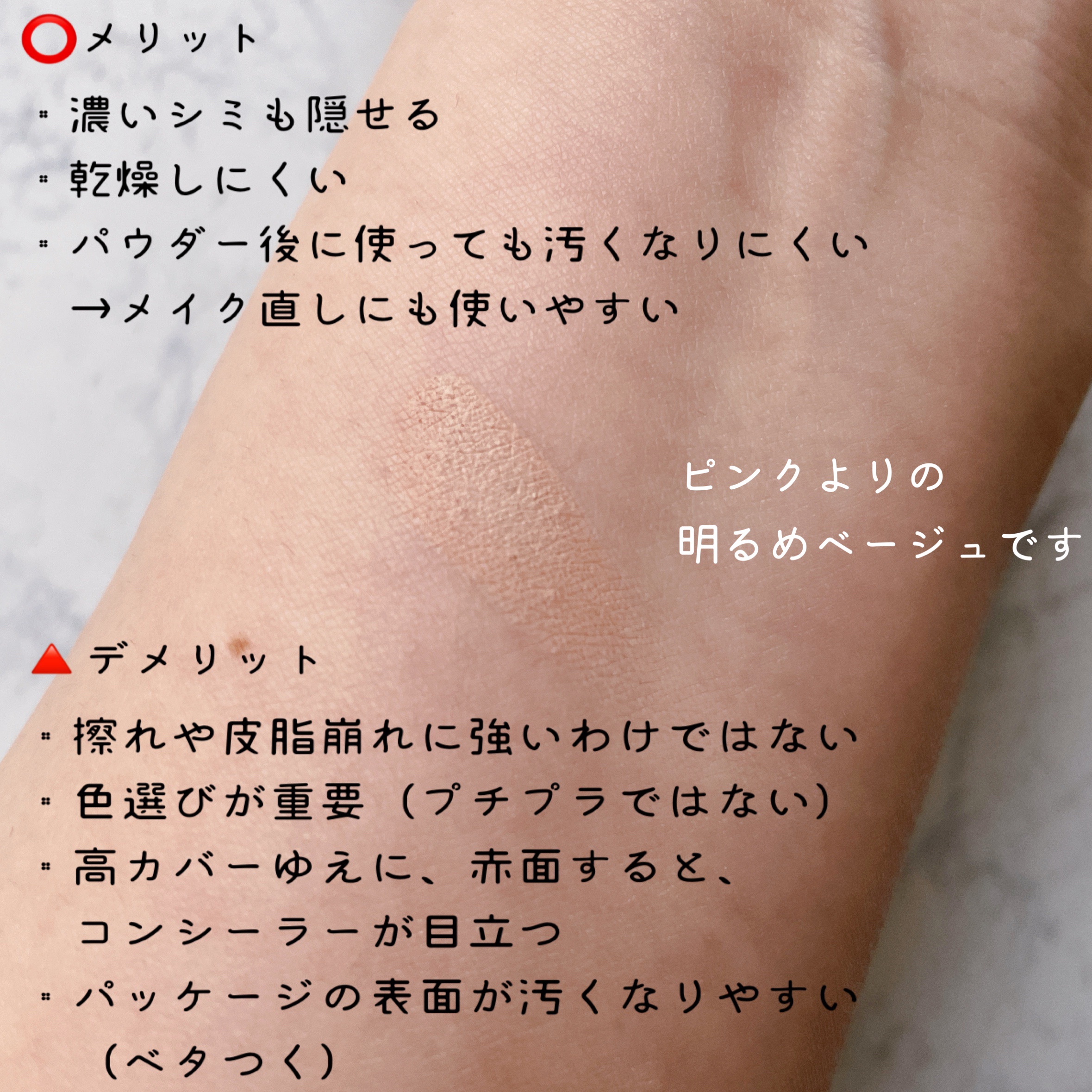 | コンシーラーランキング第27位 | しっとりしていて指でかなり塗りやすい🙆♀️重ねて使ってもボテッと厚塗り感がなくて重ねやすい! | 詳細を見る | |