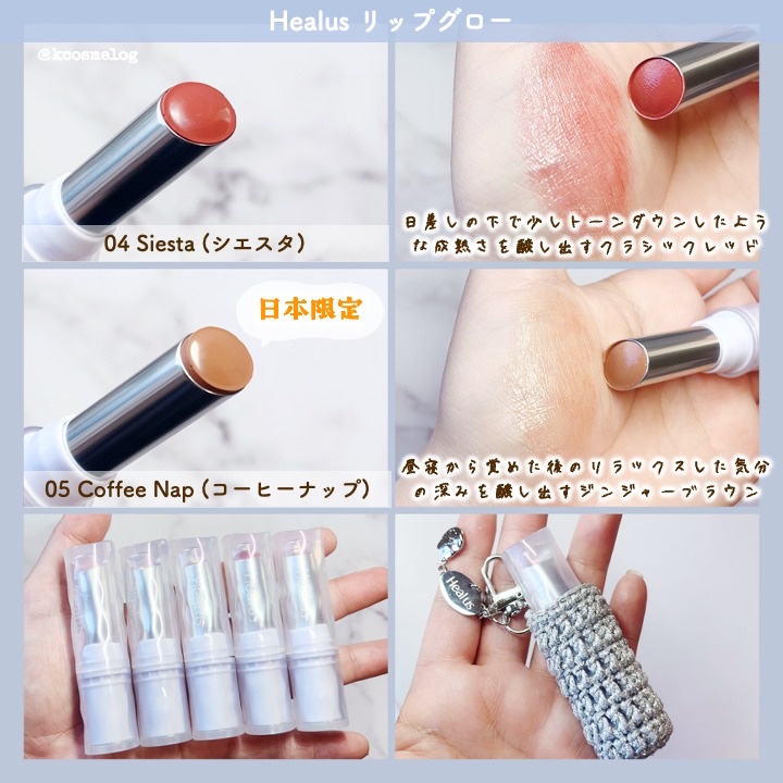 ◁他の韓国コスメ情報はDr.Gの姉妹ブランド"Healus"♡シアーな発色でリップバームみたいな塗り心地!気軽にサッと使えるし、どのカラーも落ち着いた色味で肌に馴染む感じが好き🪄リップを塗ったあとにチークにもポンポンっと使うと可愛くておすすめ...