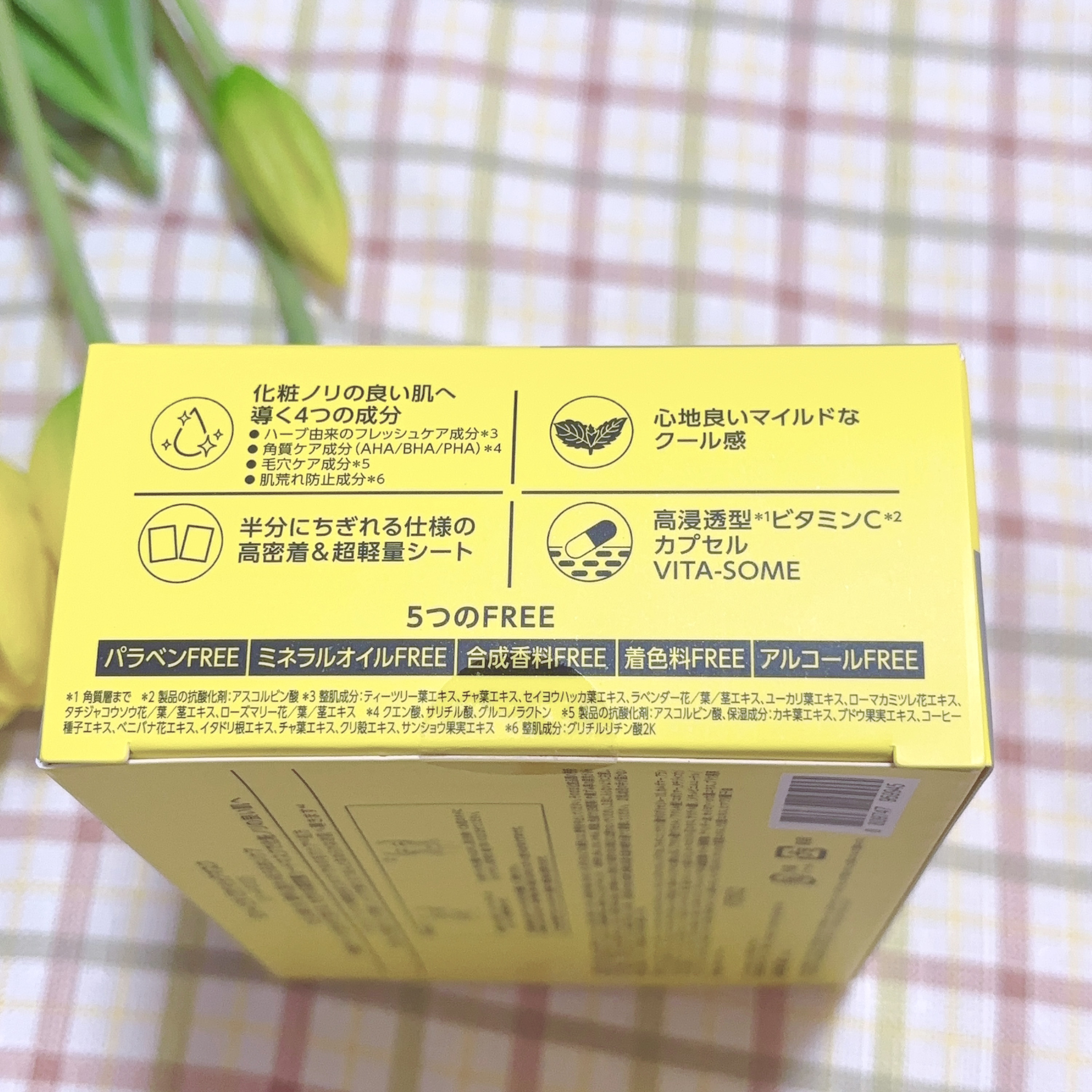 - つるつる肌に導き化粧ノリUP*¹!半分に切れるシートで毛穴ケア*²する朝用クイックマスクが数量限定で登場! 高浸透型*³ビタミンC*⁴カプセル配合で有用成分を効果的に届け、毛穴の目立たない引きしまった肌に導きます。 毛穴ケア*²成分や角質ケア成分*⁵など、化粧ノリの良い肌へ導く4つの成分を配合。みずみずしいテクスチャーと清涼感で、メイク前の火照った肌にも心地よい使用感です。 半分に切れる仕様の高密着&超軽量シートを採用で、気になる部分へ好きな大きさで、忙しい朝のながらスキンケアに最適です。 *¹ お肌にうるおいを与えることによる *² 肌を保湿することで毛穴が目立たなくなる *³ 角質層まで *⁴ 製品の抗酸化剤:アスコルビン酸、整肌成分:3ーOーエチルアスコルビン酸、アスコルビルグルコシド *⁵ AHA/BHA/PHA(クエン酸、サリチル酸、グルコノラクトン)