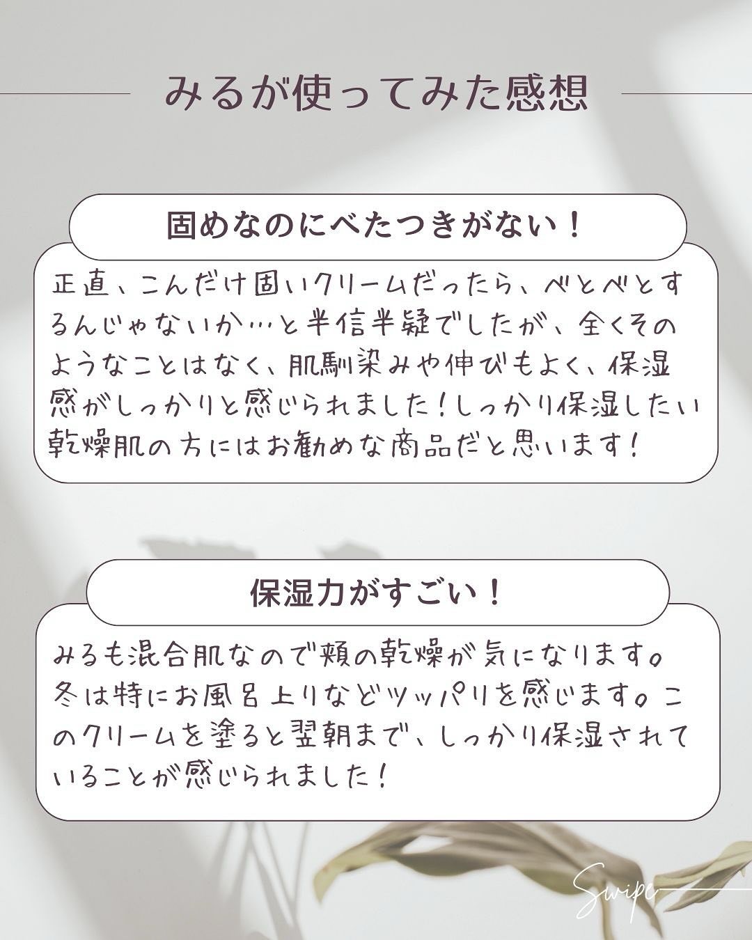 | 滑らかなテクスチャー🫧 伸びと肌なじみが良い使用感!! 水分感も感じる印象 | 詳細を見る | ||