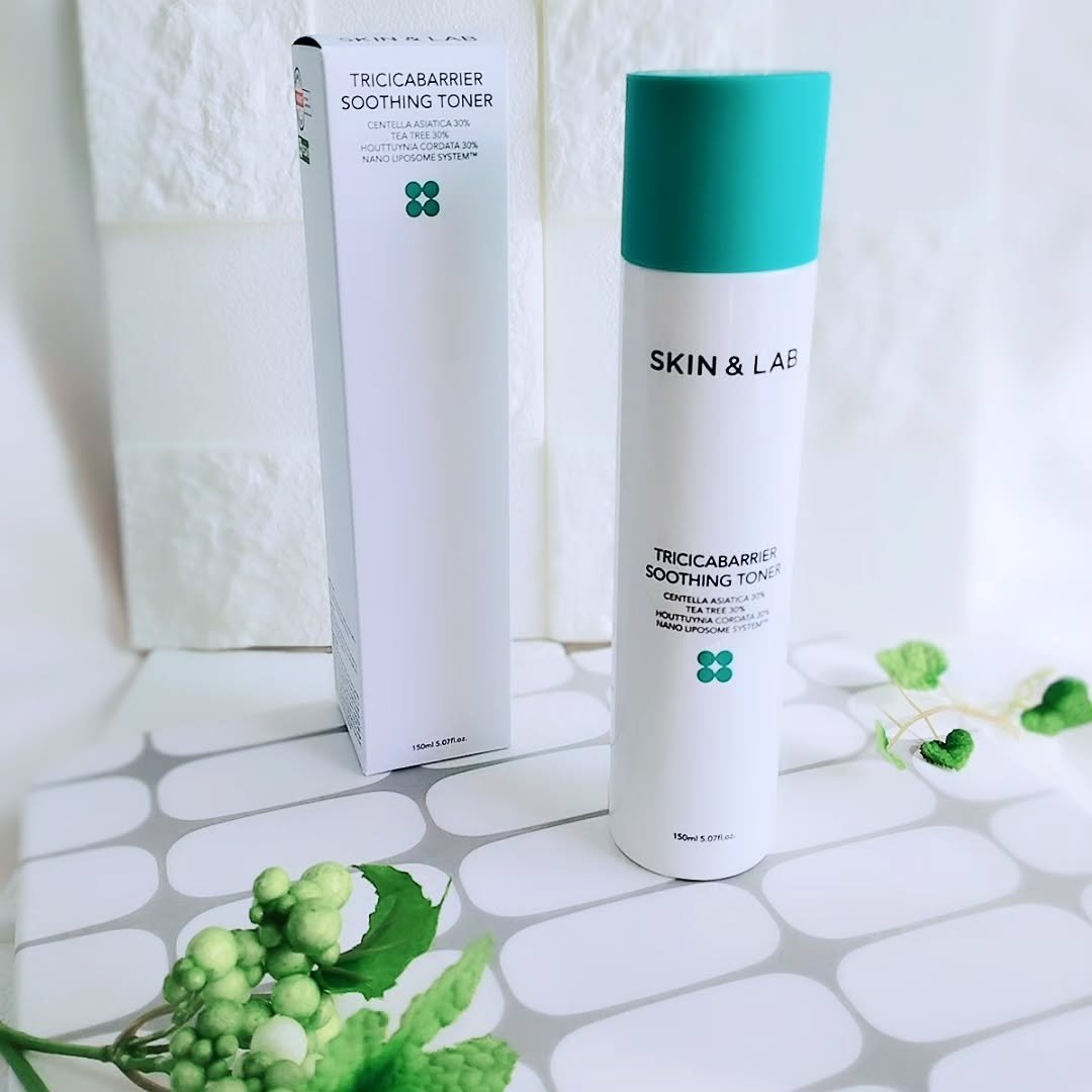 \肌荒れケアにはこれ!/SKIN&LABトリシカバリアスージングトナー鎮静効果で有名な、ツボクサ・ドクダミ・ティーツリーを90%配合!さらに。肌脂質と類似した構造であるリポソームをさらに小さいナノ粒子にしたナノリポソームで、肌の奥まで3草を効...