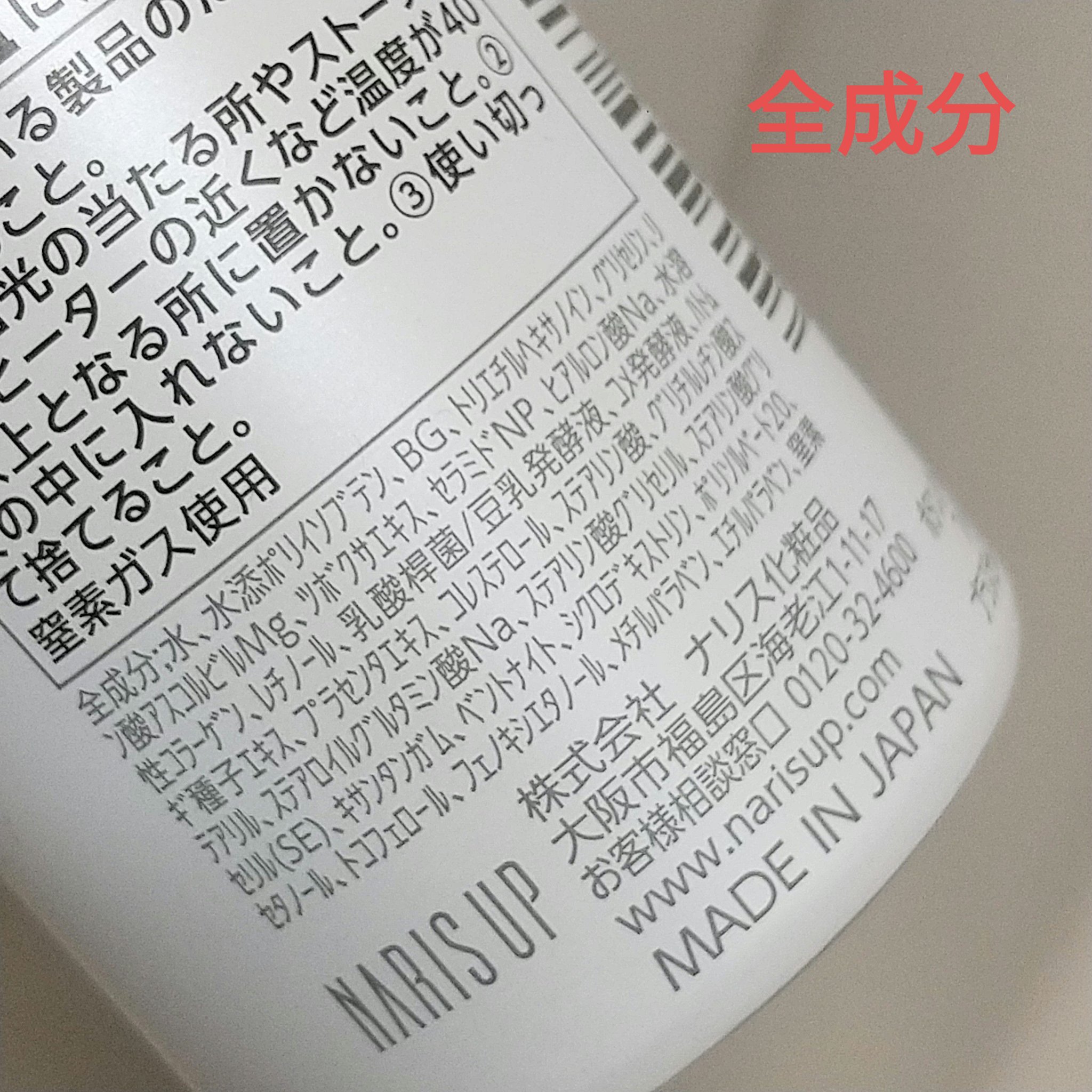 - <140g> 水、水添ポリイソブテン、BG、トリエチルヘキサノイン、グリセリン、リン酸アスコルビルMg、ツボクサエキス、セラミドNP、ヒアルロン酸Na、水溶性コラーゲン、レチノール、乳酸桿菌/豆乳発酵液、コメ発酵液、ハトムギ種子エキス、プラセンタエキス、コレステロール、ステアリン酸、グリチルレチン酸ステアリル、ステアロイルグルタミン酸Na、ステアリン酸グリセリル、ステアリン酸グリセリル(SE)、キサンタンガム、ベントナイト、シクロデキストリン、ポリソルベート20、セタノール、トコフェロール、フェノキシエタノール、メチルパラベン、エチルパラベン、窒素