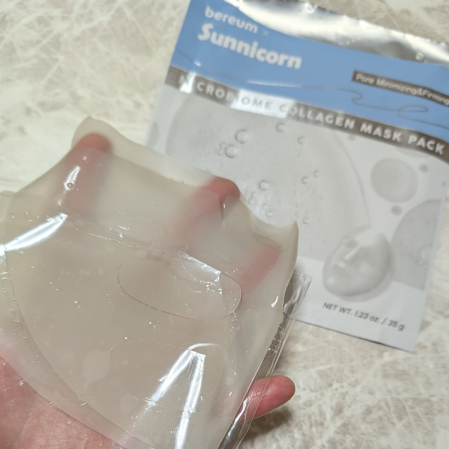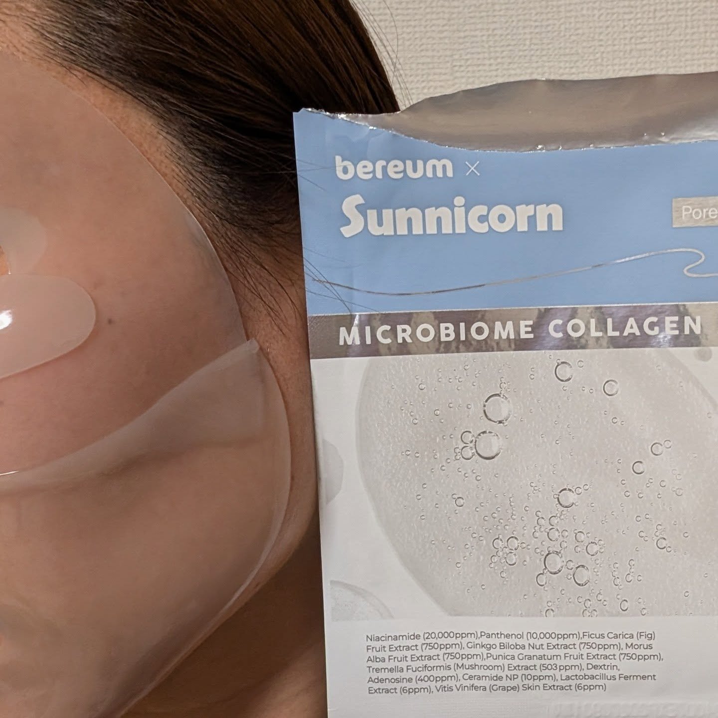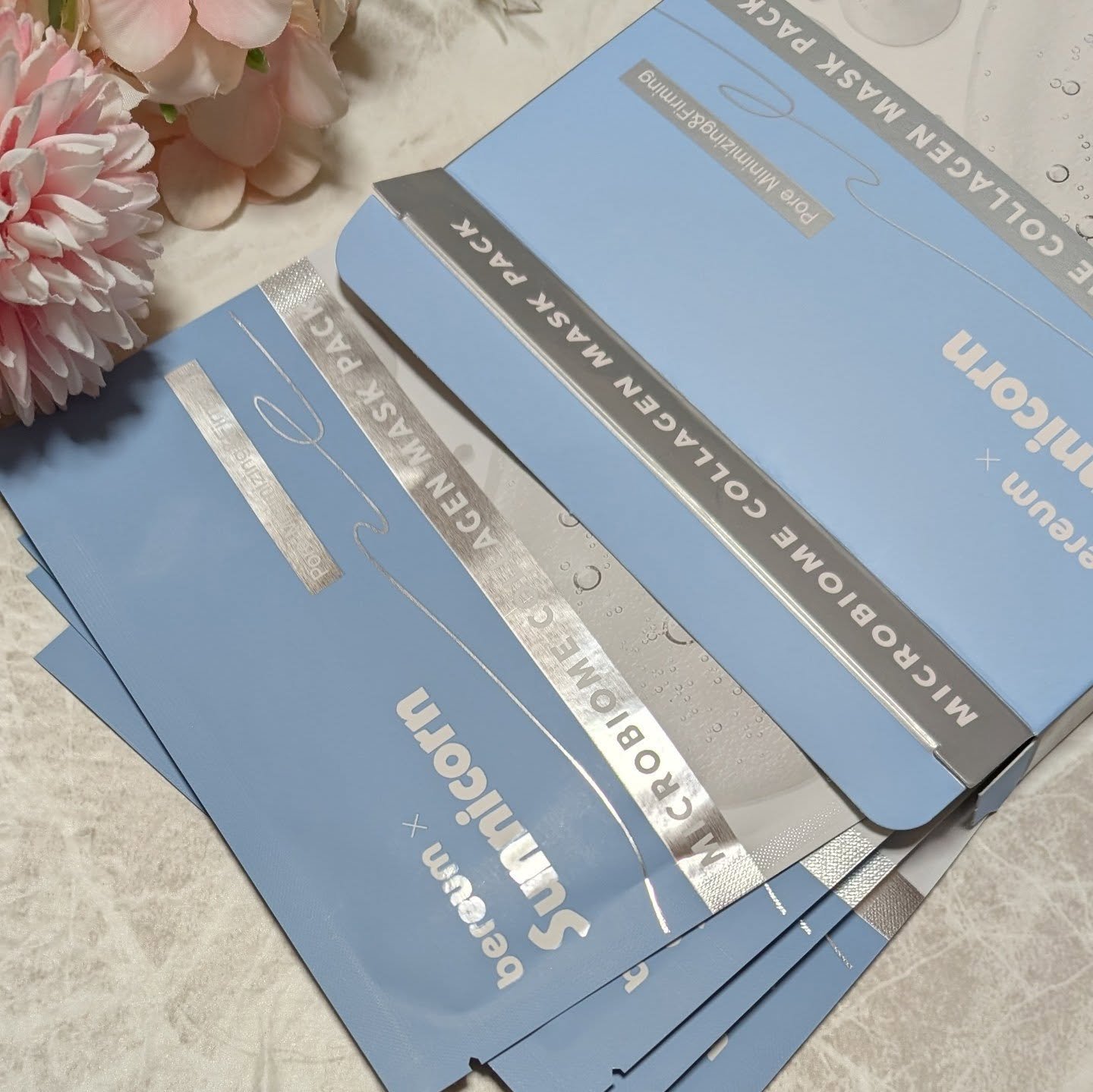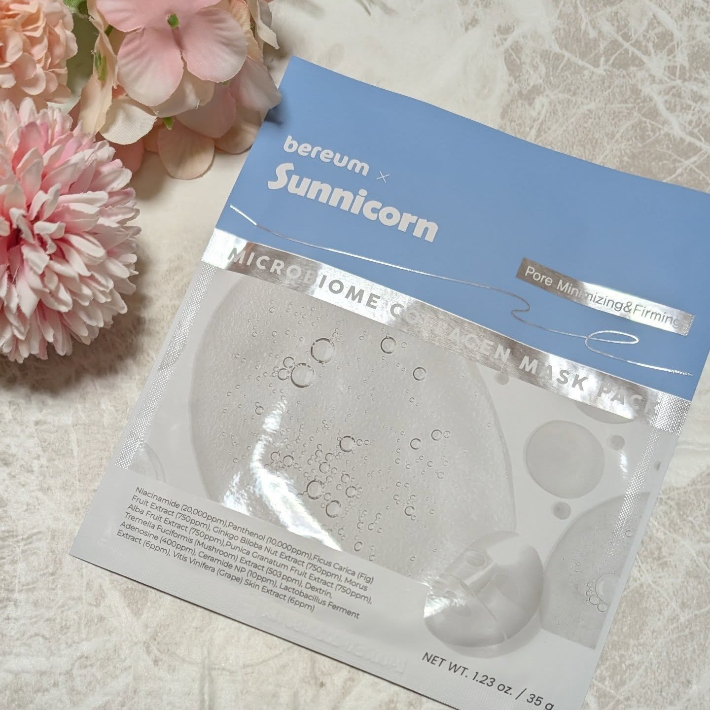 高濃縮コラーゲンゲル配合でもちもち肌をつくってくれるマイクロバイオームコラーゲンマスクパックです😍 刺激を与えずに貼って就寝することもできる大事な日の前に必須アイテムとのこと😳 ひんやりとした厚みのあるパックがすごく気持ちいい使用感で、長時間つけていても乾燥してくる感じはありません✨️
