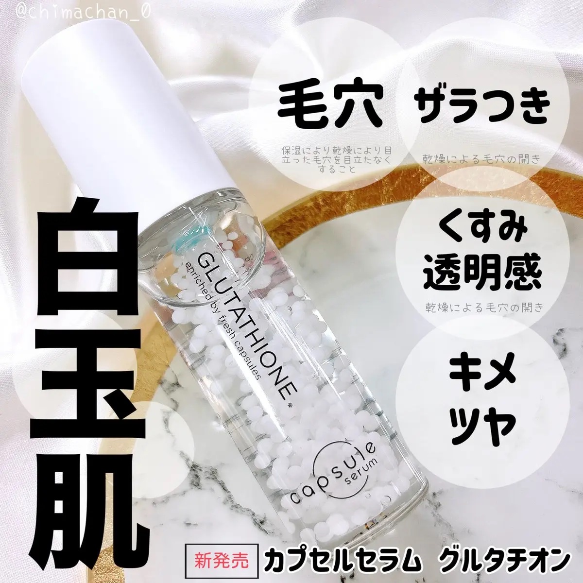 独自技術のカプセル製法によってデリケートな高濃度成分をカプセルに凝縮し、ダイレクトにお肌に届けることで気になる肌悩みにアプローチすることができるセラムやねん!! カプセルセラムは1年間で100万本程の出荷実績があるって!!大人気のセラム✨✨ 今注目されてるグルタチオンをカプセルに厳選配合!!めっちゃ入ってる!!この新鮮なグルタチオンが肌に浸透💓