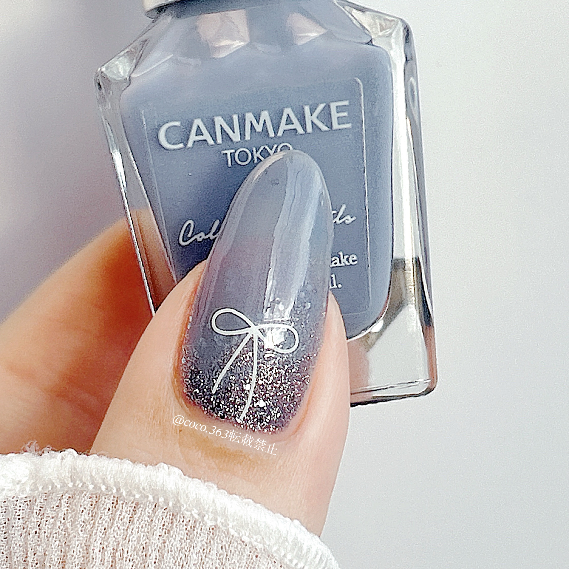 青ラメ入りの白みブルー(N82)が明け方の空、シルバー&ゴールドラメ入りのシアーブラック(N91)が夜空を想起させる冬空ネイルになりました💅🏻 塗り重ねるだけの簡単ネイル✨ CANMAKE カラフルネイルズ ︎✿N82 クラウドドレススカイ ︎✿N91 プロムクイーン(★限定色) ︎✿N24 トゥインクルドロップ