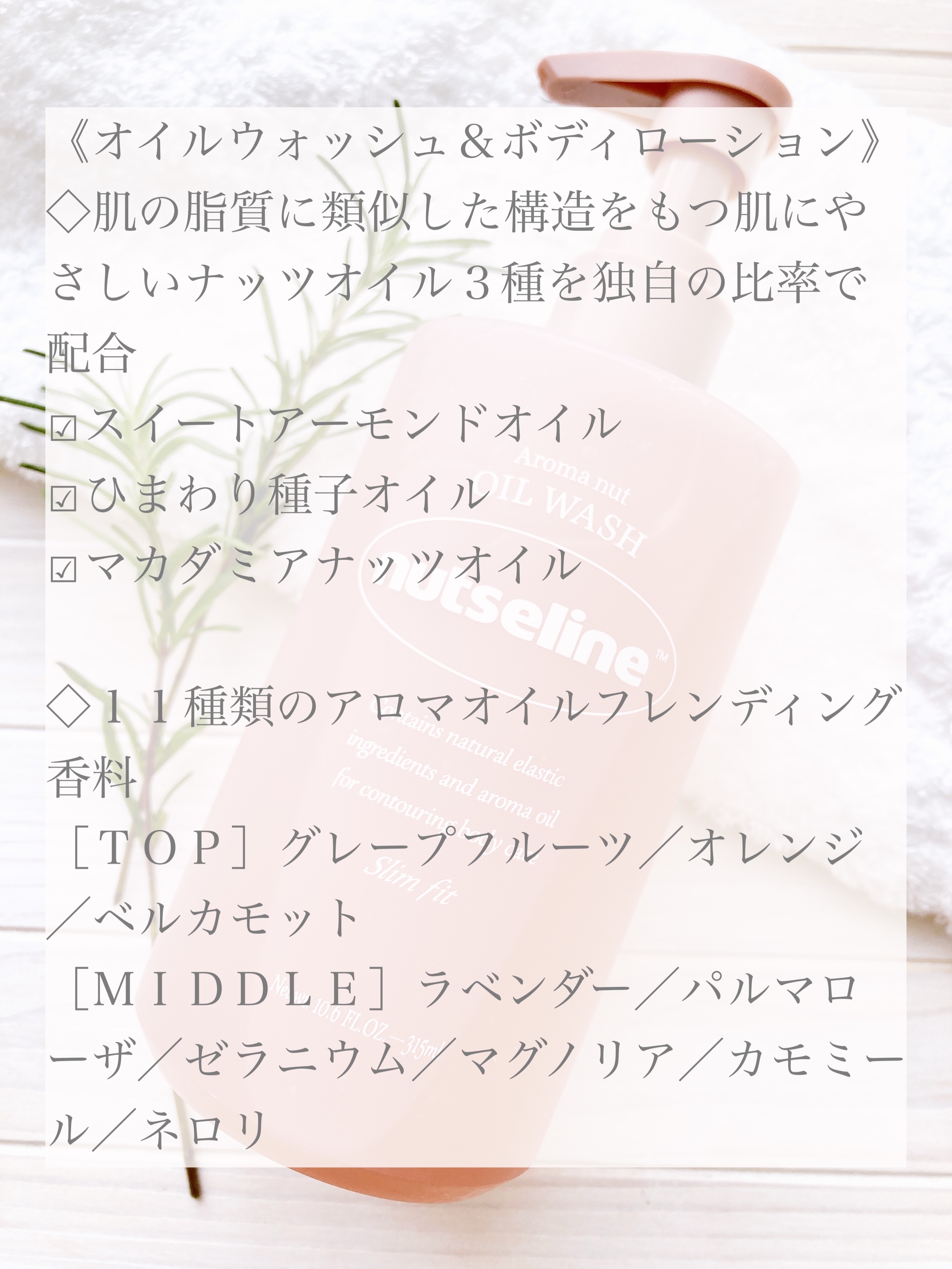 ナッツオイル3種 •スイートアーモンドオイル •ヒマワリ種子オイル •マカダミアナッツオイル ふんわりと軽いテクスチャーのクリーム☁️!! 個人的に薬草…?コリアンダーっぽさも感じるような、爽やかな香りで夏場にも良さそう🌿 洗い上がりのお肌は、お風呂上がりのローションも要らないくらいにしっとり🫧 個人的に、ほんのりジンジャーを感じるピリッとするような爽やかないい香りでした🙌🏻
