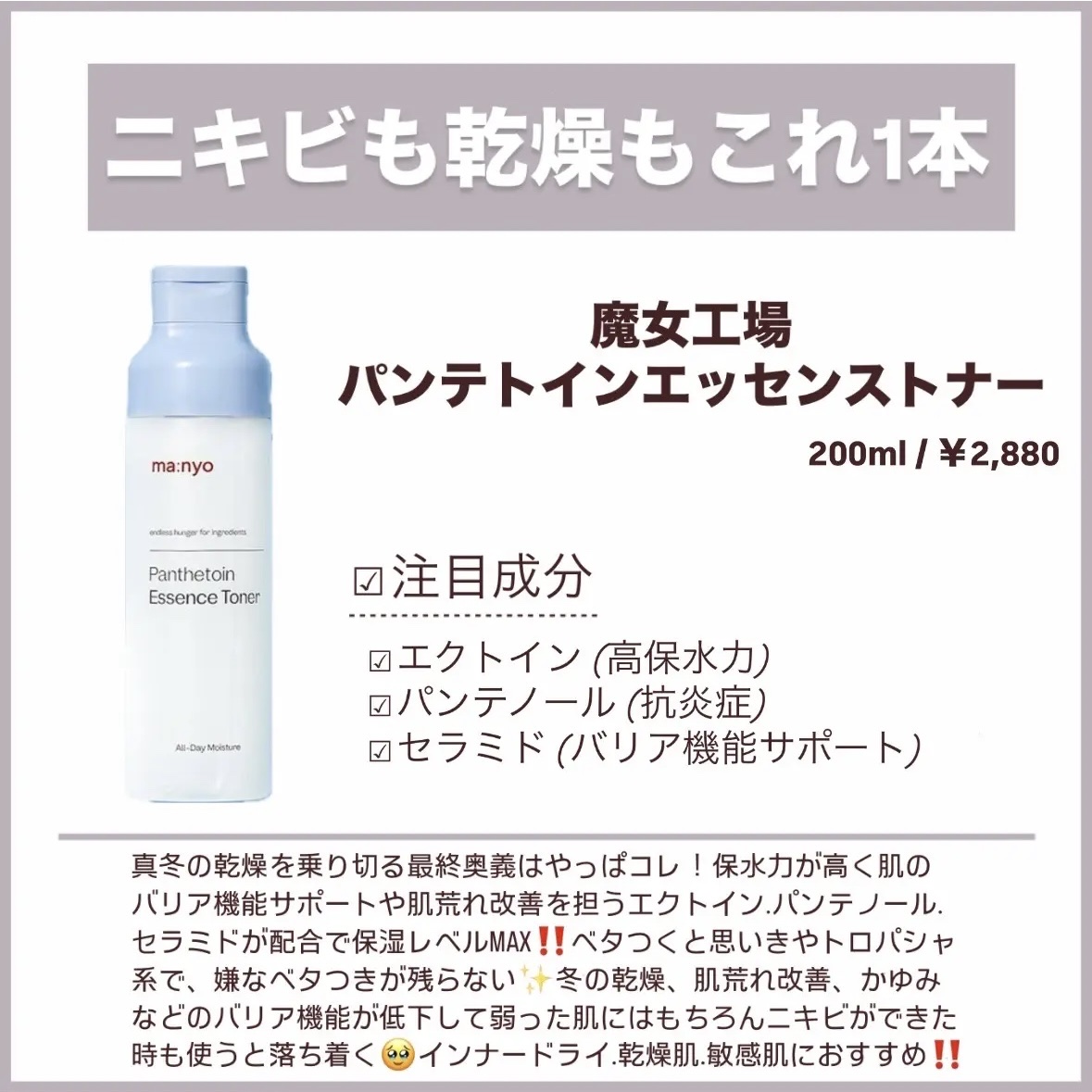 manyo パンテトイン エッセンス トナー | 3,200円 |