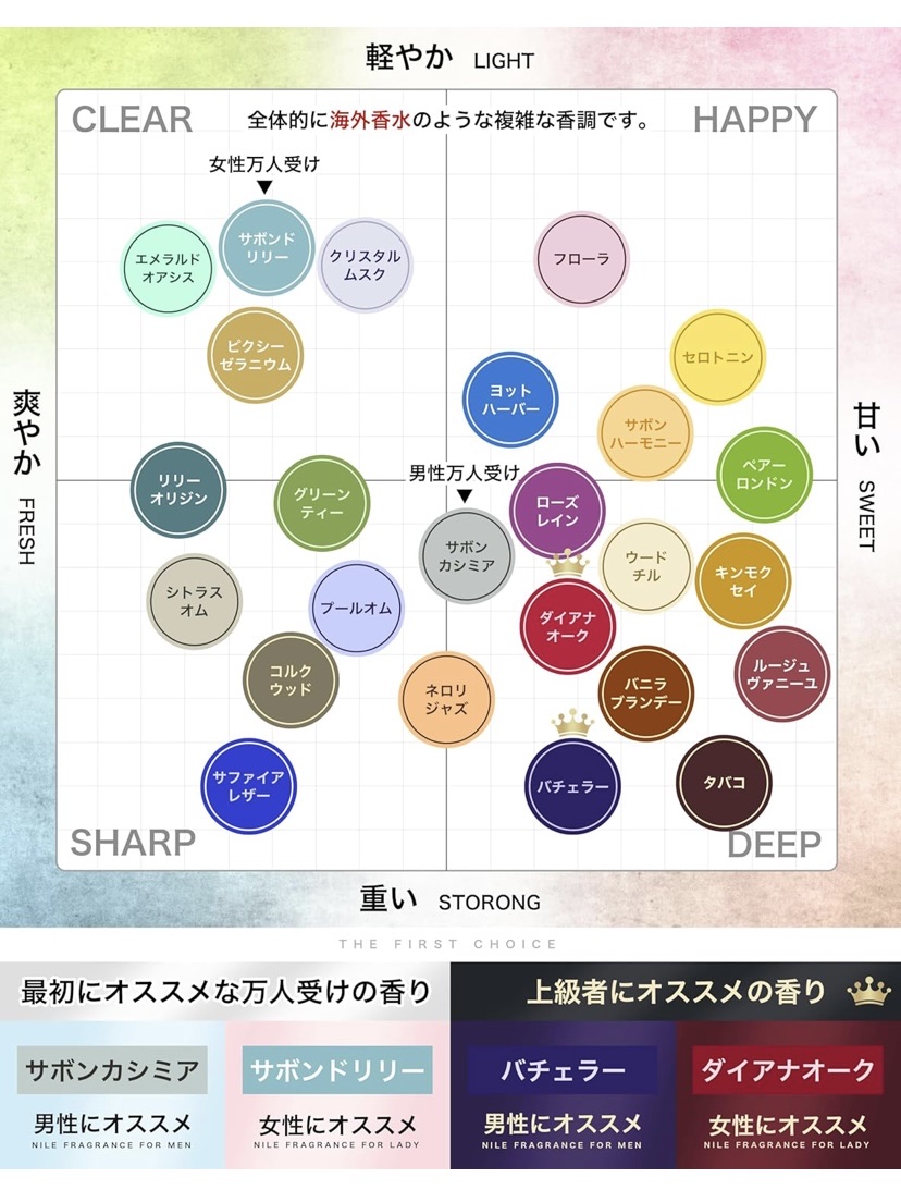 | 香水ランキング第1位 | 清潔感あるし、癖がない。好印象を与える女の子らしいフローラル系の香りです。 | 詳細を見る | |