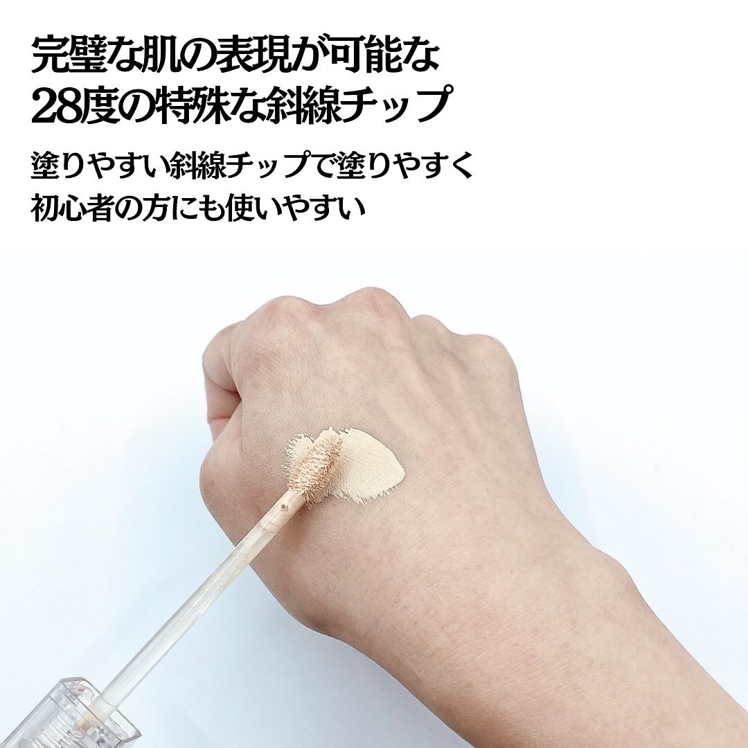 スキンケア成分 70% ! ドクダミ280,000ppm ! 欠点はカバーし悩みはケアするスキンケアコンシーラー ドクダミエキス配合なのでニキビなどがあっても悪化をさせずに使えるよ 28°の特殊斜線チップが肌に塗りやすい。スーッと伸びて軽いつけ心地だけどカバー力は高い。