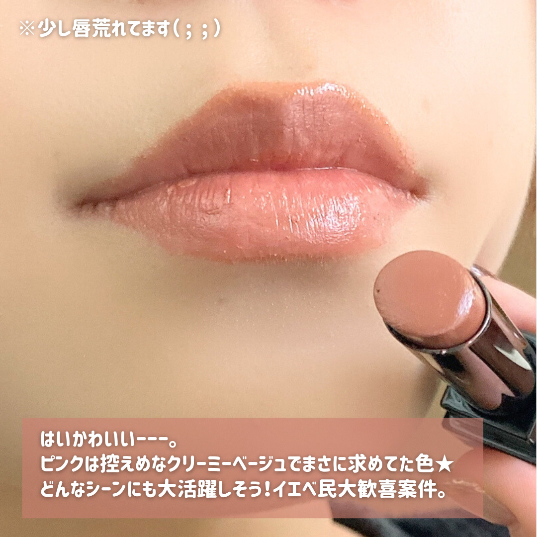 全色まとめてスウォッチ ▪EX-3 生焼けパンケーキ クリーミーベージュ系 ブルベでもギリギリ浮かないベージュ 赤み系ベージュなので意外といける ▪EX-4 ピンクバナナホイップ クリーミーピンク系 明るめのリップが得意な方に似合いそうな可愛いピンク系リップ (これ人気出そうだな) 全体的にまろやかなクリーミーカラーで パッキリ色がつく訳じゃないのでとても使いやすい 今回の限定色は全部可愛いカラーでした!