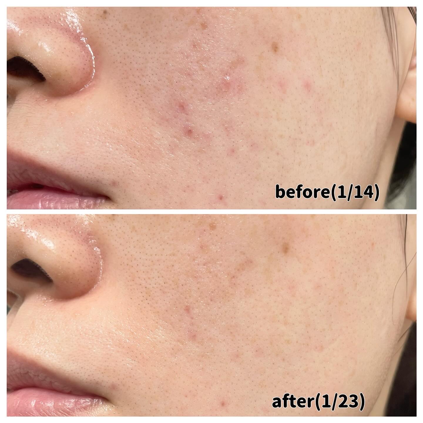 めちゃくちゃ大人気のトーニングセラム!! これ期待以上にニキビ跡が薄くなった最高🔥 サーモンDNA成分が1%最多配合! PDRN10,000ppm 実際に使ってみて、写真でも分かる通りニキビ跡が本当に薄くなったの!! 1週間ちょっとでニキビの赤みも引いて
