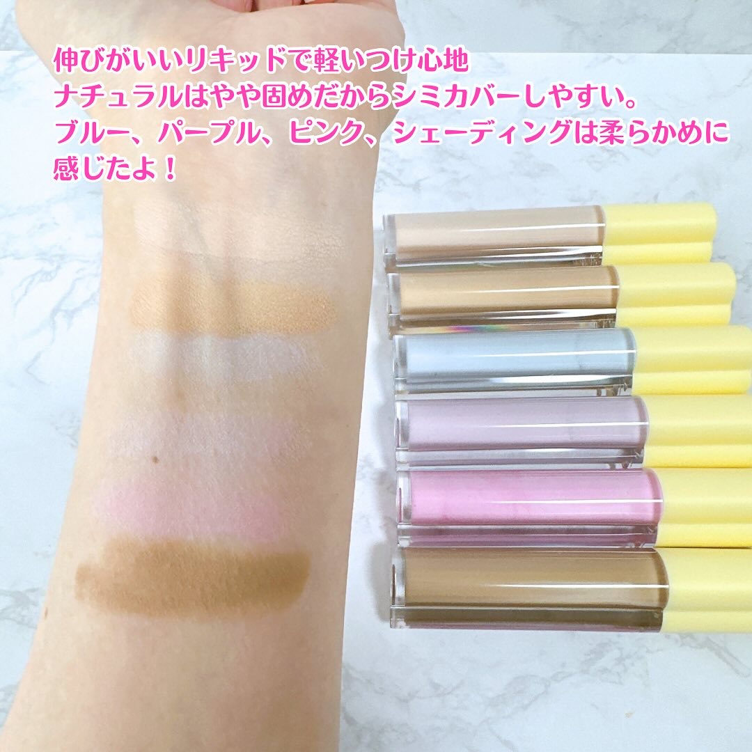 発色良くみずみずしいです🥰 カバー力がありながら、厚塗り感は無しに近いと思います✨ 6種類の豊富なカラーバリエーションで、ベースメイクからシェーディング、紅潮カバー、くすみ補正、さらにはポイントチークの表現まで幅広く対応可能❗️ ハートパフは、厚みがありフカフカでとっても可愛く大き目なのでコンシーラーが素早く馴染みます🎉