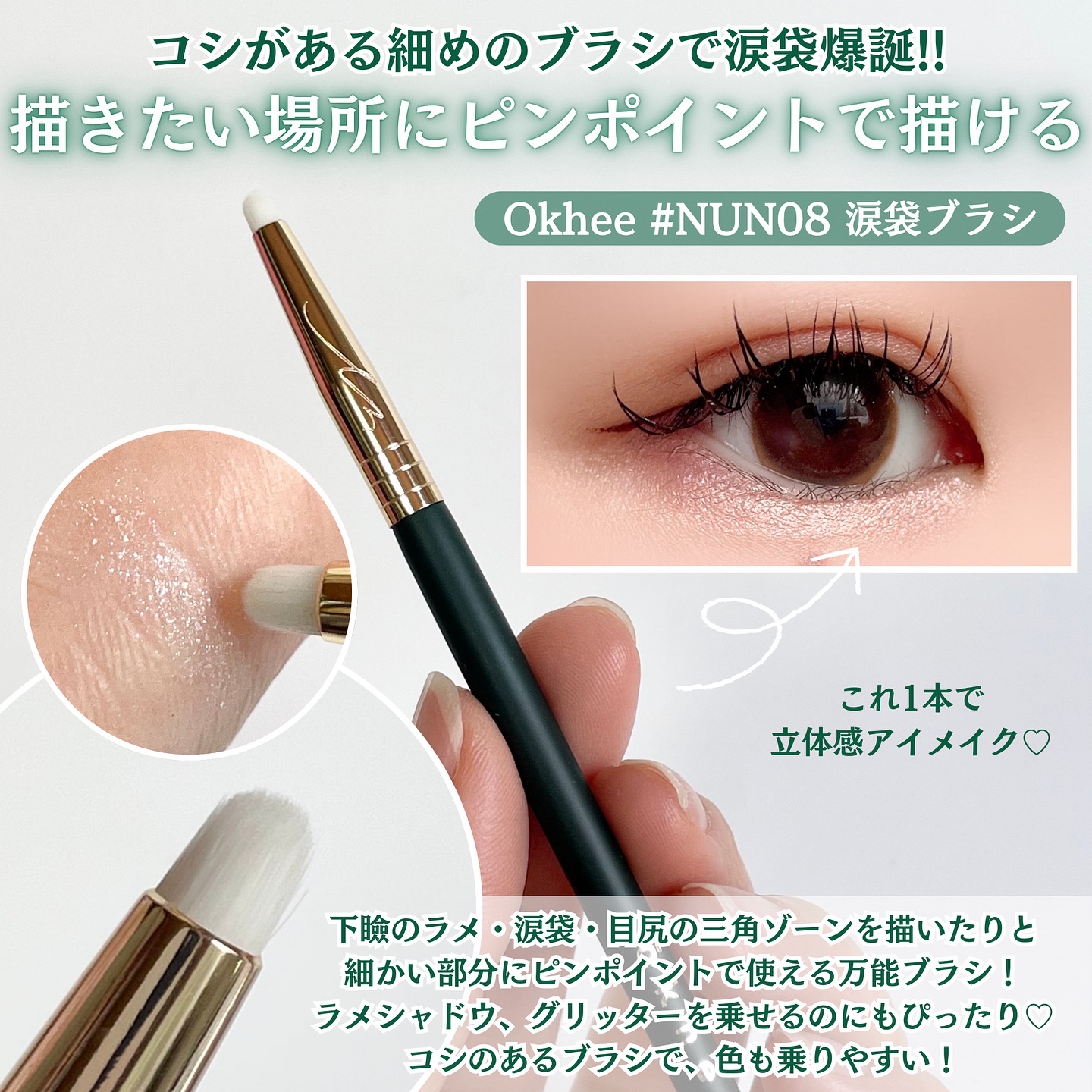 #PR@sooador_jp🤍SOOADOR🤍okhee&BYMAENGメイクブラシ··🫧okhee#NUN08涙袋ブラシ涙袋にぴったりなサイズで使いやすく、アンダーシャドウ、ラメシャドウ、グリッターなど、活用度の高いブラシ。三角ゾーン、アイ...