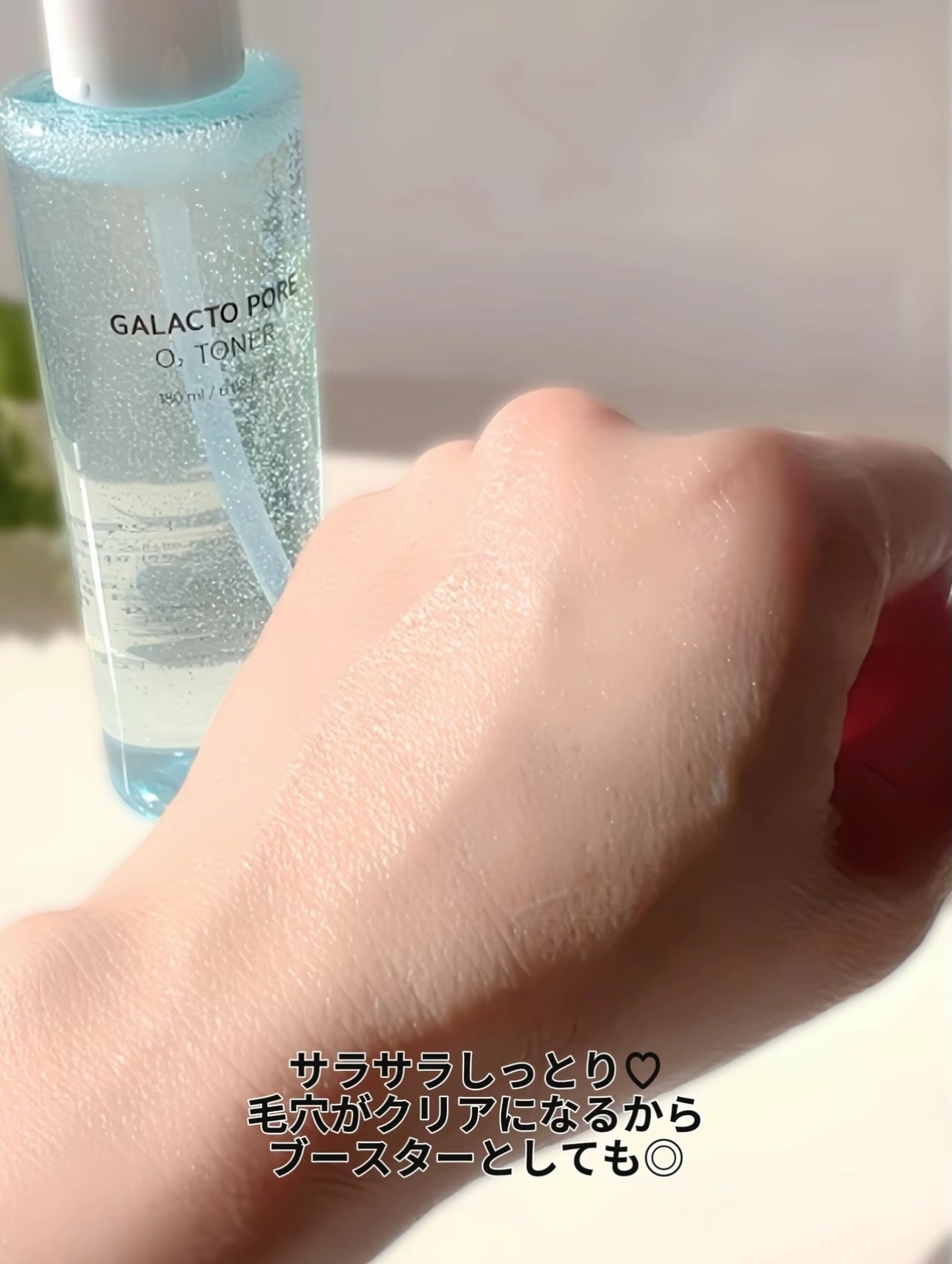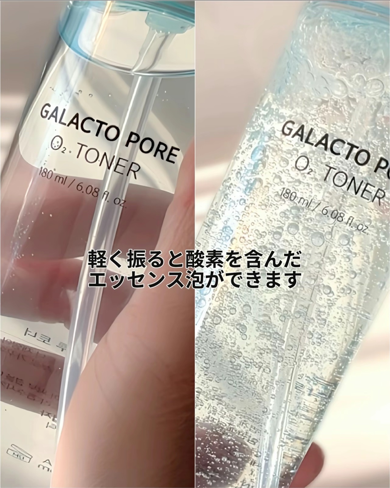 - ガラクトシリーズより新しく登場したガラクトポアオーツー(O2)トナー。 新感覚の酸素を含んだバブルエッセンスが毛穴に詰まった古い角質や過剰な皮脂をケアして肌のキメを整え、イキイキとした肌印象に導きます。 敏感なお肌にもやさしい使い心地で毛穴ケアが可能です。 しっとりべたつきのないテクスチャーで朝晩使用でき、さらに乾燥による毛穴目立ちを防ぐため肌表面に潤いを与えます。 皮膚低刺激テスト完了済*。敏感肌の方もご使用いただけます。 <特長成分> ガラクトミセス発酵ろ過物 : 肌にやさしい使い心地でうるおいを与える。(保湿成分) ウィッチヘーゼル : 肌を引き締めなめらかな印象をサポート。(整肌成分) PHA : 角質ケア成分配合。(角質柔軟成分) <テクスチャー&香り> - テクスチャー しっとり伸びやすく肌になじみやすいテクスチャー - 香り シトラスハーブ系 *全ての方に皮膚刺激が発生しないということではありません