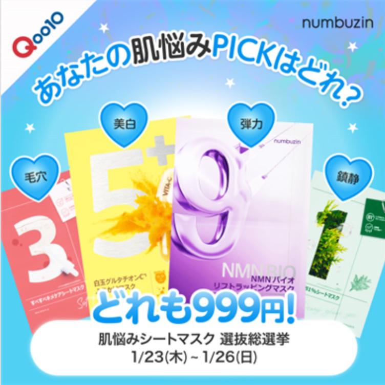 ぷりっと弾力を感じる素肌に近づいてきた♡ エイジングケアに効果的なNMNが贅沢に配合されているんだけど、吸収を高めてくれるリポソームの形で配合されているところが素敵。 粘性の高い美容液なので肌への密着度も高まります。サポーターズとして早めに使わせていただいていたのでお気に入りすぎてもう2本目に突入です🫢 Qoo10では【ナンバーズインシートマスク選抜総選挙】開催中! 999円ぽっきり期間:1/23(木)~1/26(日)