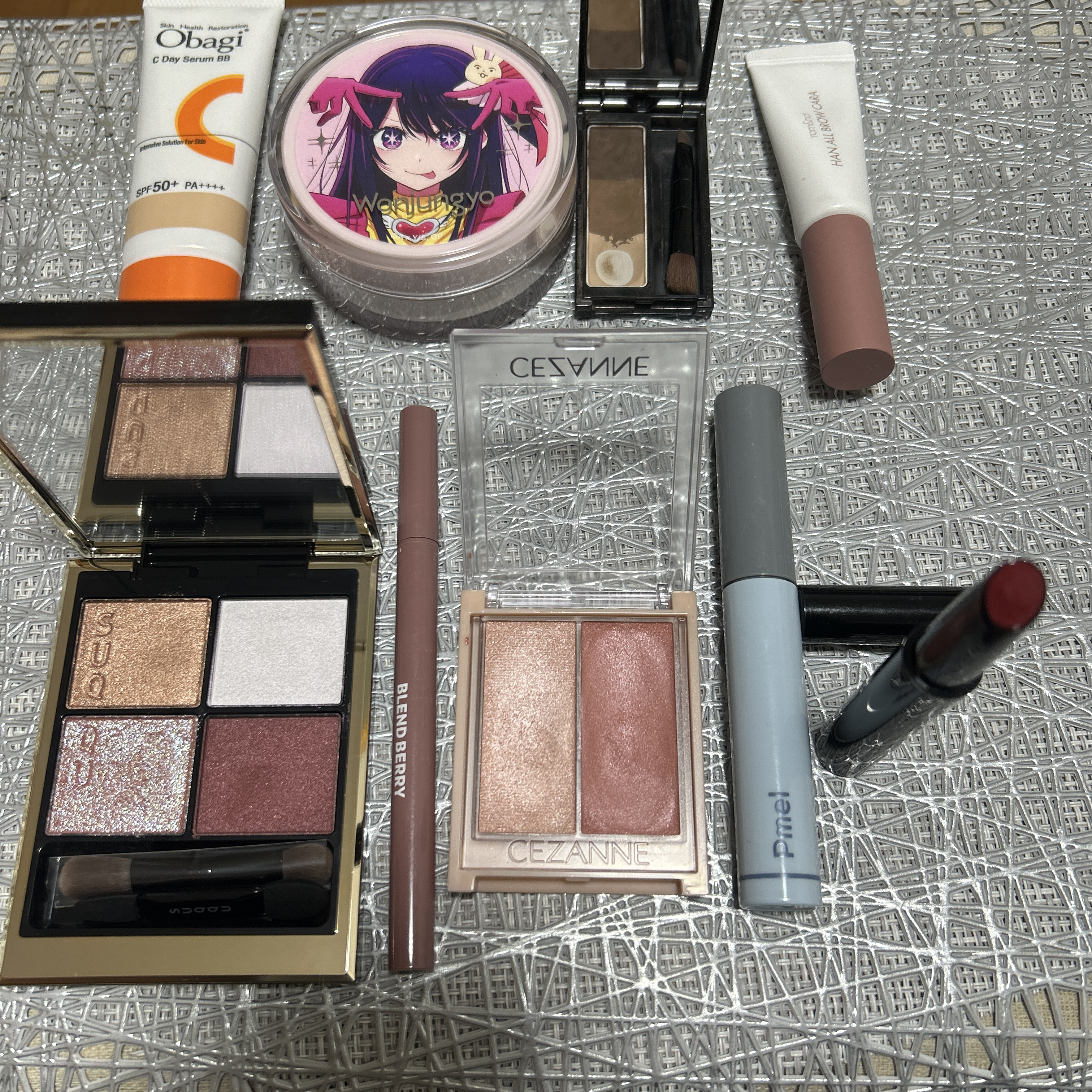 キャンメイクプランプリップケアスクラブ01クリア kissマットシフォン UVホワイトニングベースN02Natural ローラ メルシエ / LAURA MERCIERフローレス ルミエール ラディアンス パーフェクティング クッション NARSライトリフレクティングセッティングパウダー プレスト N(写真忘れた) KATEデザイニングアイブロウ3DEX-5 ヘビーローテーションキスミー ヘビーローテーション カラーリングアイブロウ03アッシュブラウン キャンメイクシルキースフレアイズNo.06トパーズピンク キャンメイククリーミータッチライナーNo.07アズキブラウンを目尻長めに ローラ メルシエ / LAURA MERCIERマットラディアンス ベイクドパウダー ハイライト01