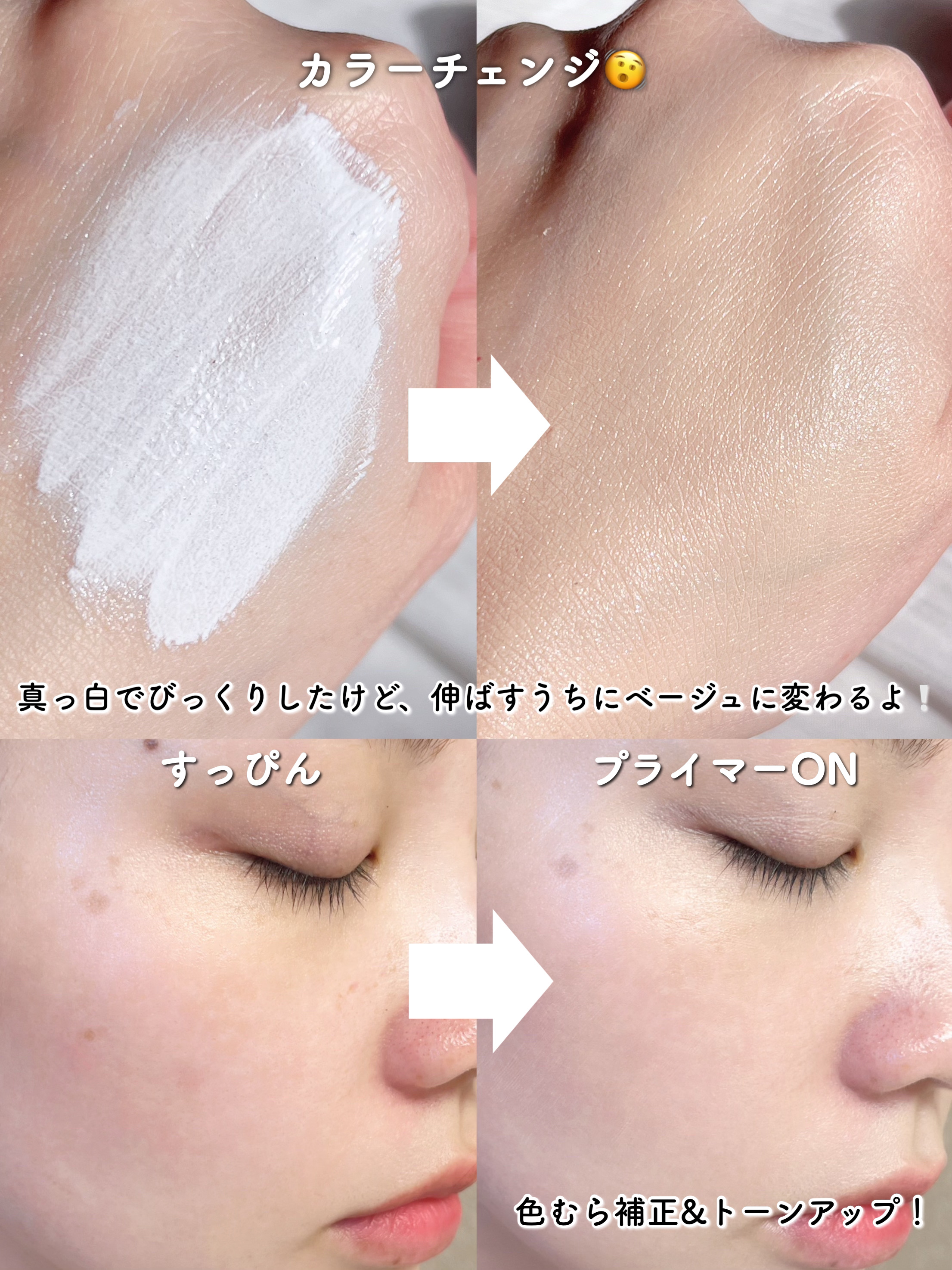 乾燥崩れしやすい方、マスクで蒸れたり汗をかいても崩したくない方はぜひ参考にしていただけたら嬉しいです♡ 重たくない、軽くて薄膜なベースに🫧 頑張ってる感なく綺麗に見せてくれるから 日常使いにぴったりなのに紫外線対策バッチリ とにかく肌の粗を隠して、綺麗に見せたい、崩したくない!って時のベースメイク🏆 長時間お直しできないとか、勝負時に!